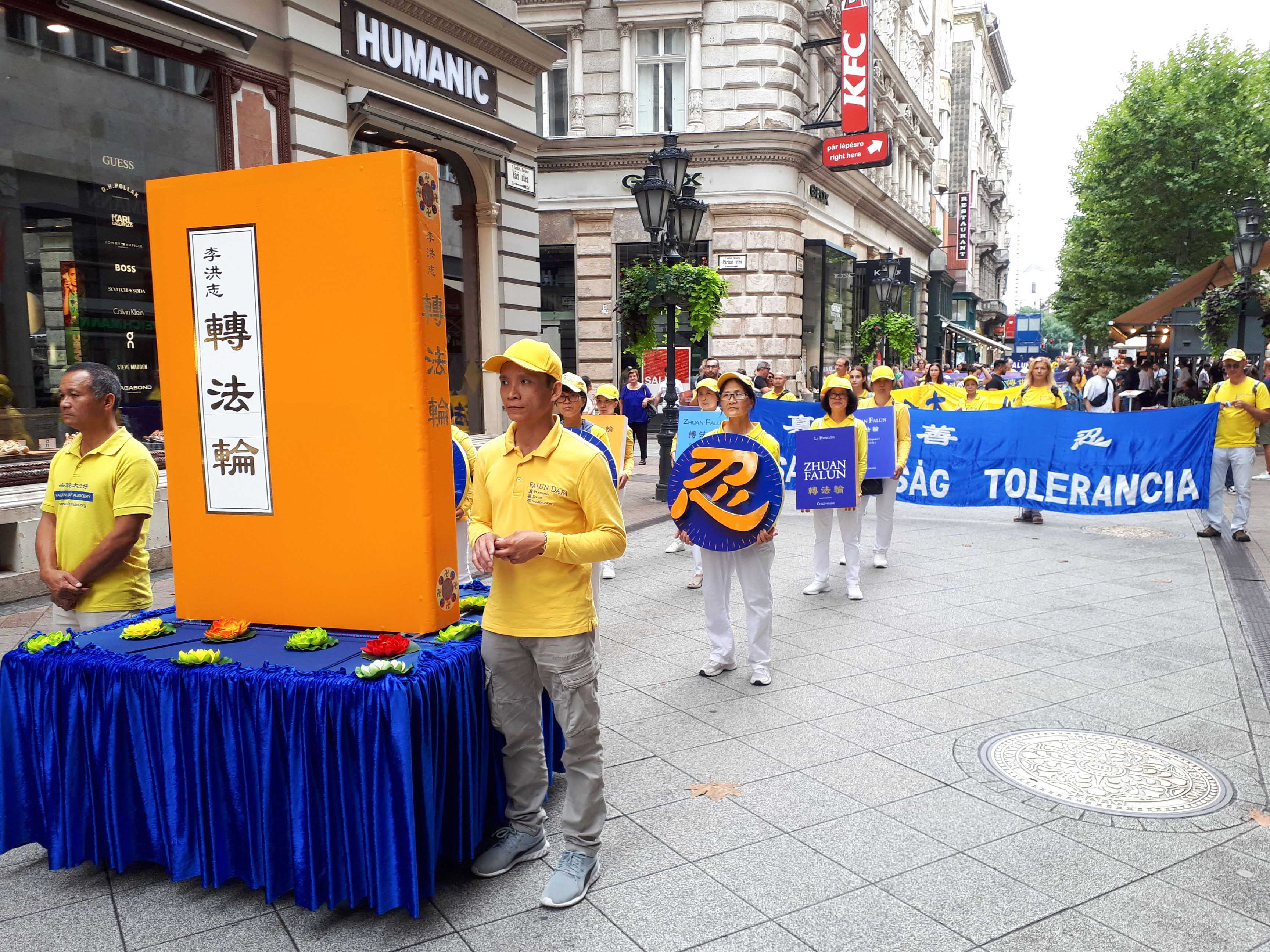游行从布达佩斯市中心福瓦姆(Fõvám)广场的中央市场大厅前出发,沿着瓦奇(Váci)街到达克里斯托夫(Kristóf)广场,然后返回福瓦姆广场。法轮功学员还在广场设立了信息亭,向公众传播法轮功真相。