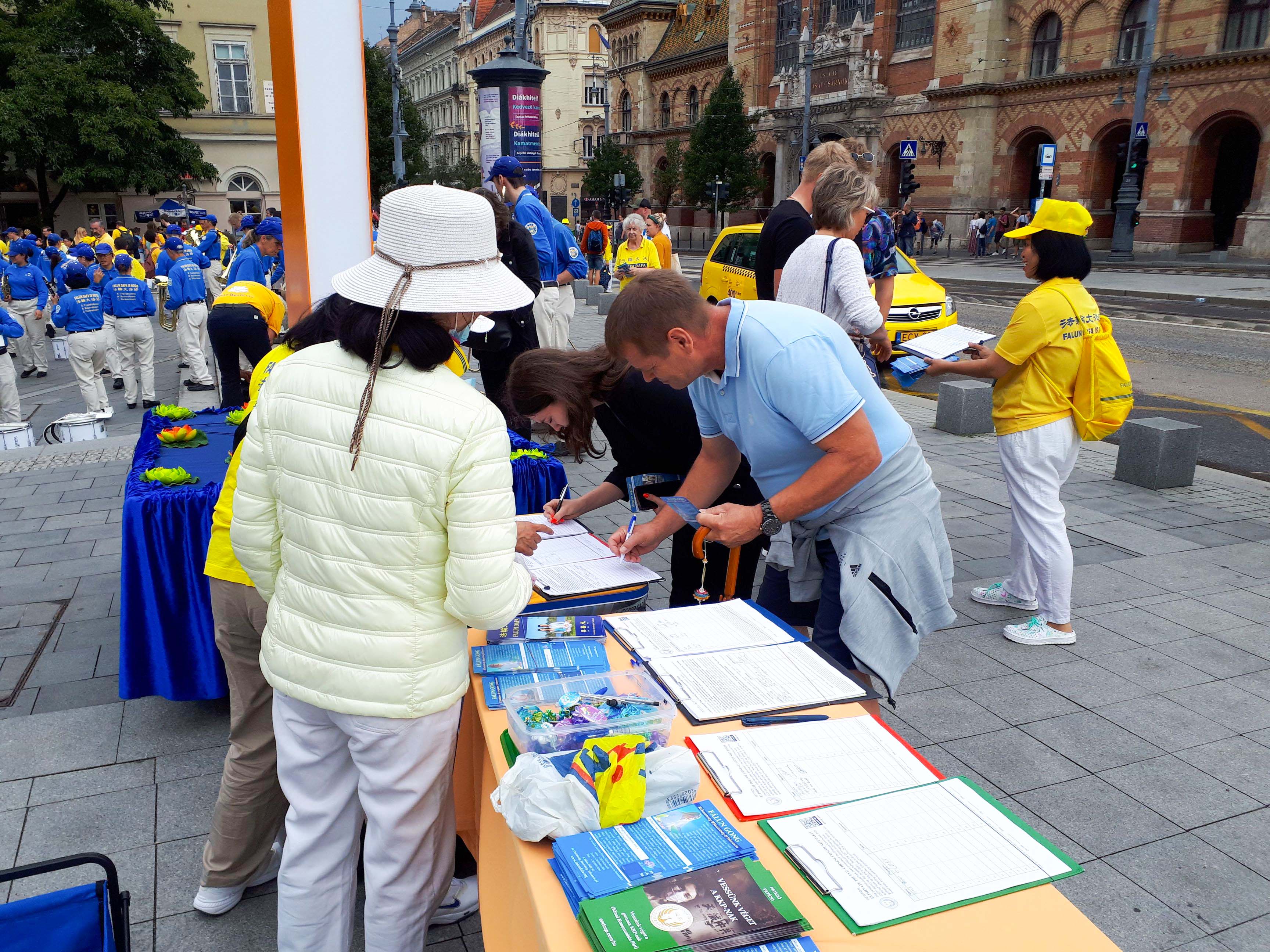 参加活动的德国法轮功学员说:“我以前参加过这样的活动,但这次对我来说很特别,因为我既不会说匈牙利语也不会说英语。但我用心去发(真相资料),效果非常好。我很快就发完了真相传单,匈牙利人非常乐于接受。我感觉和匈牙利人很亲近 。”