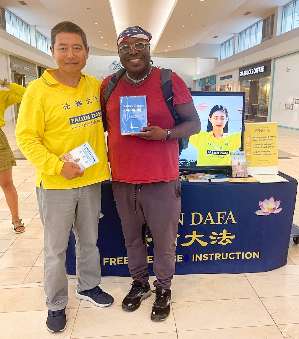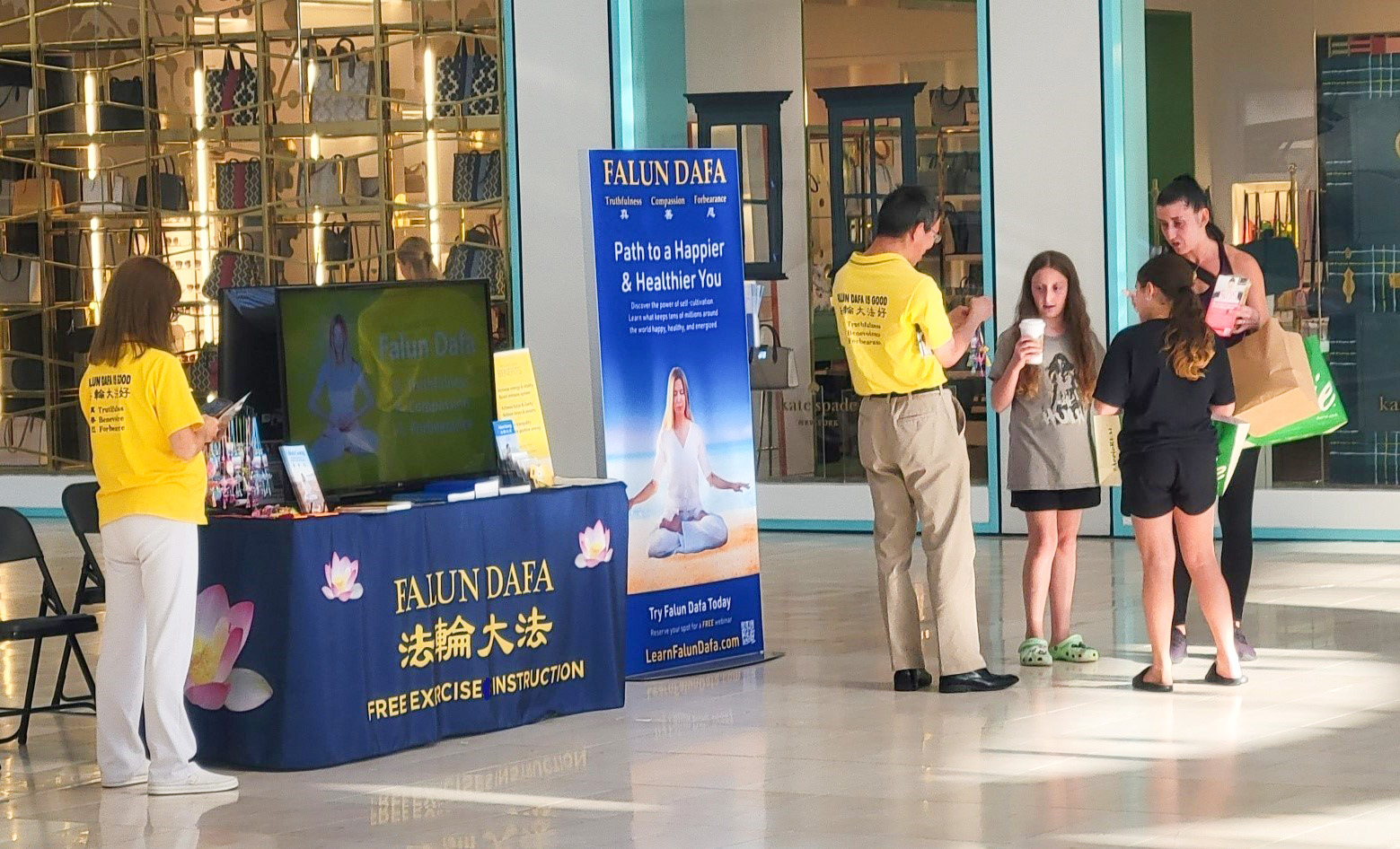 在沃尔特怀特曼(Walt Whitman Mall)购物中心的法轮功展位持续了一个月,学员们把大法的美好和祝福带给了更多的有缘人。