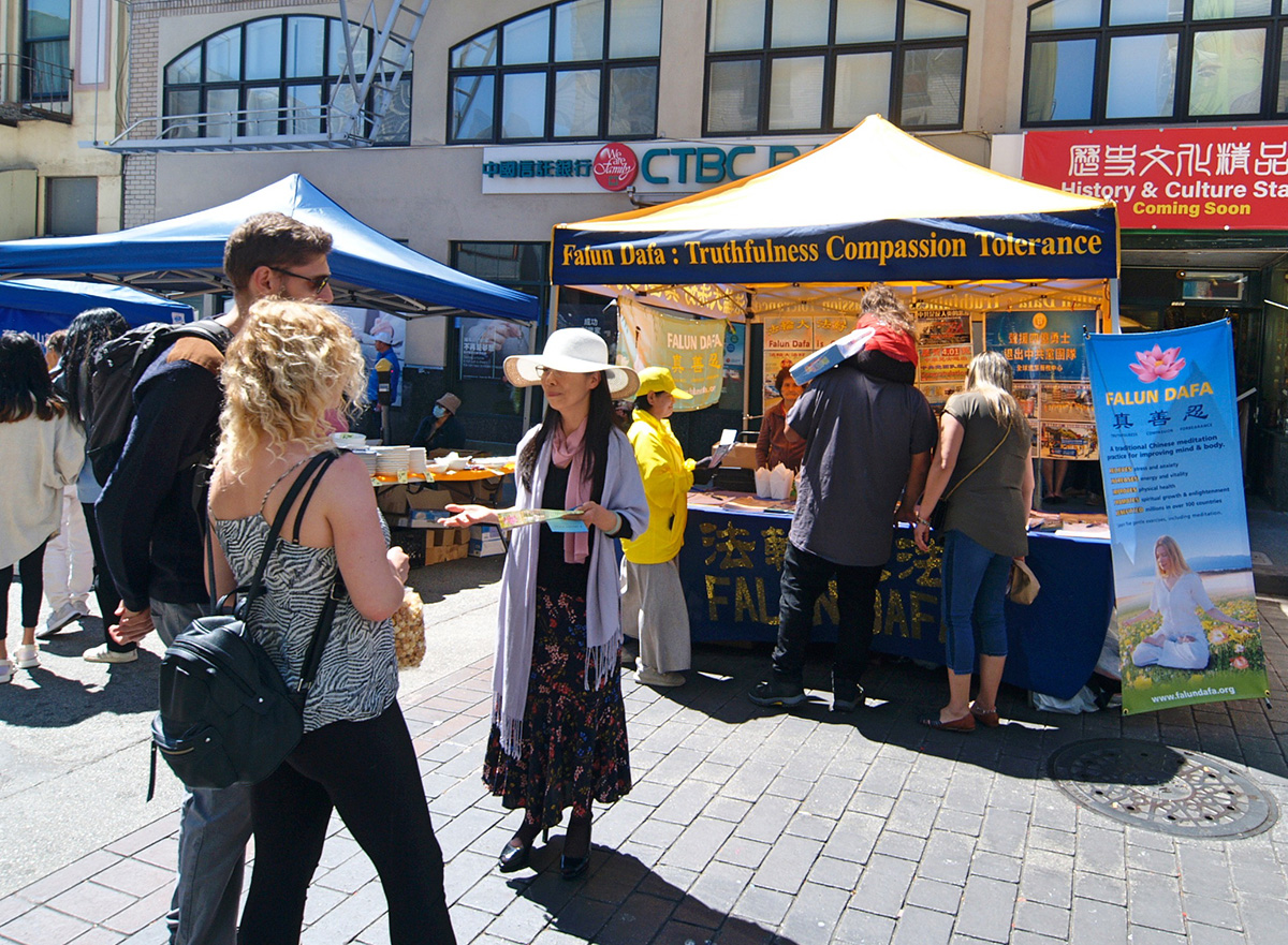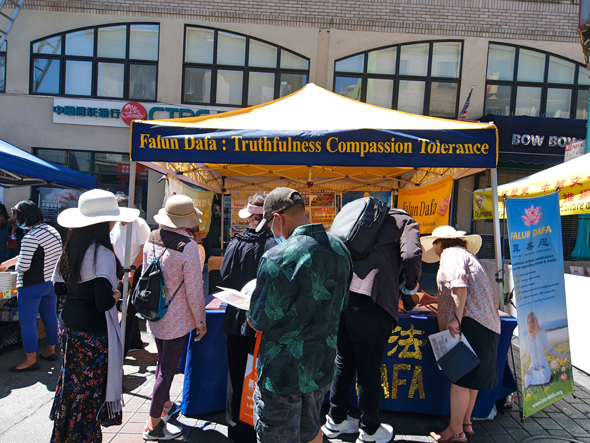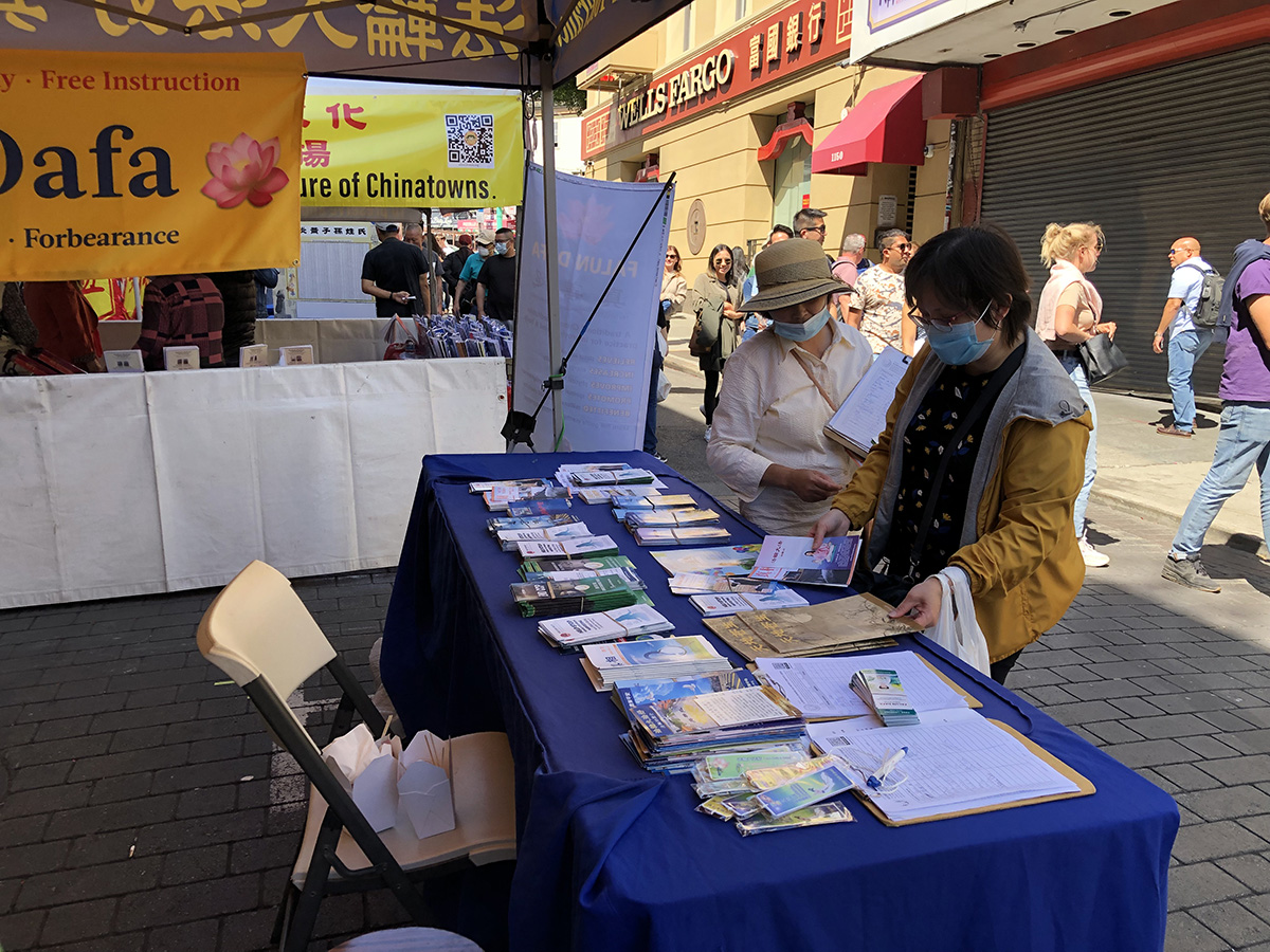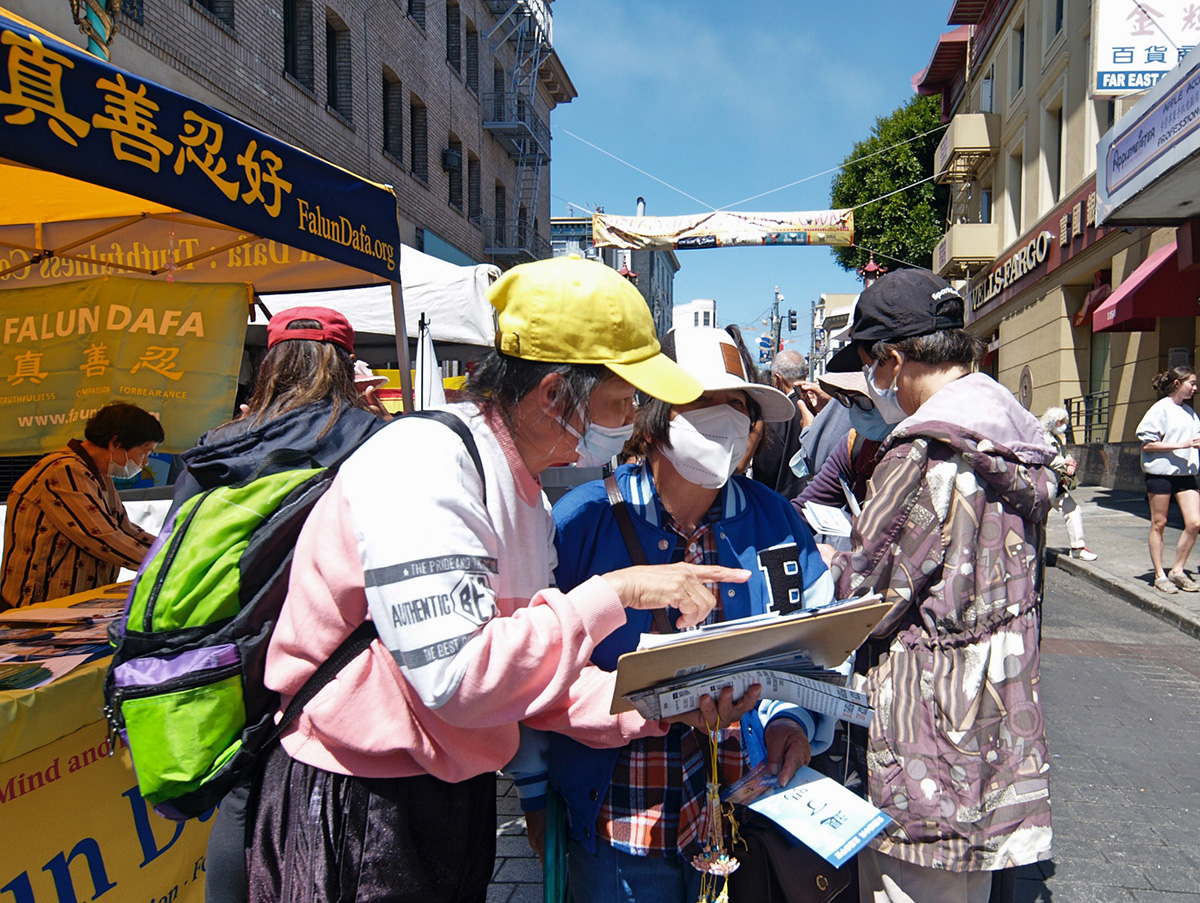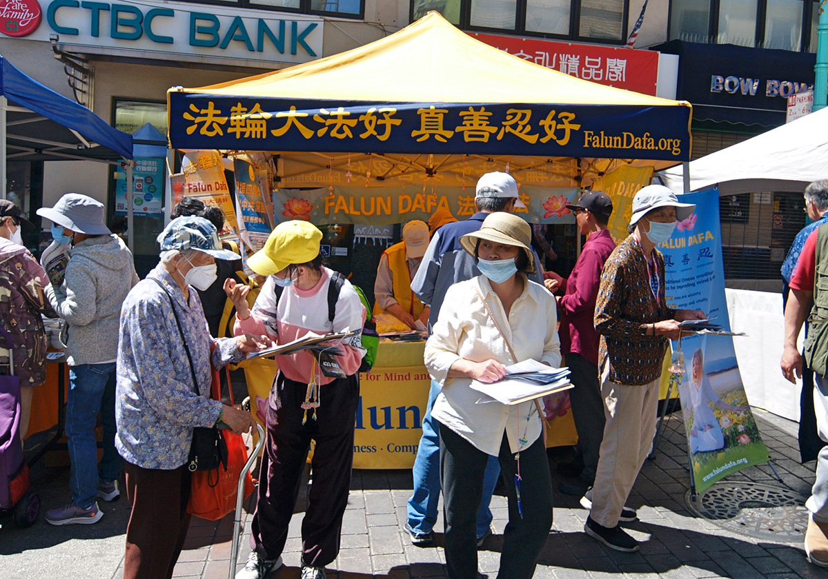 ![]() 图3~7:二零二二年八月二十七日和二十八日,旧金山湾区的法轮功学员在旧金山华埠中秋街会上设立摊位,传播法轮功的真相,并帮助华人三:退.。二十七日,有五十六位华人三:退.。 |
