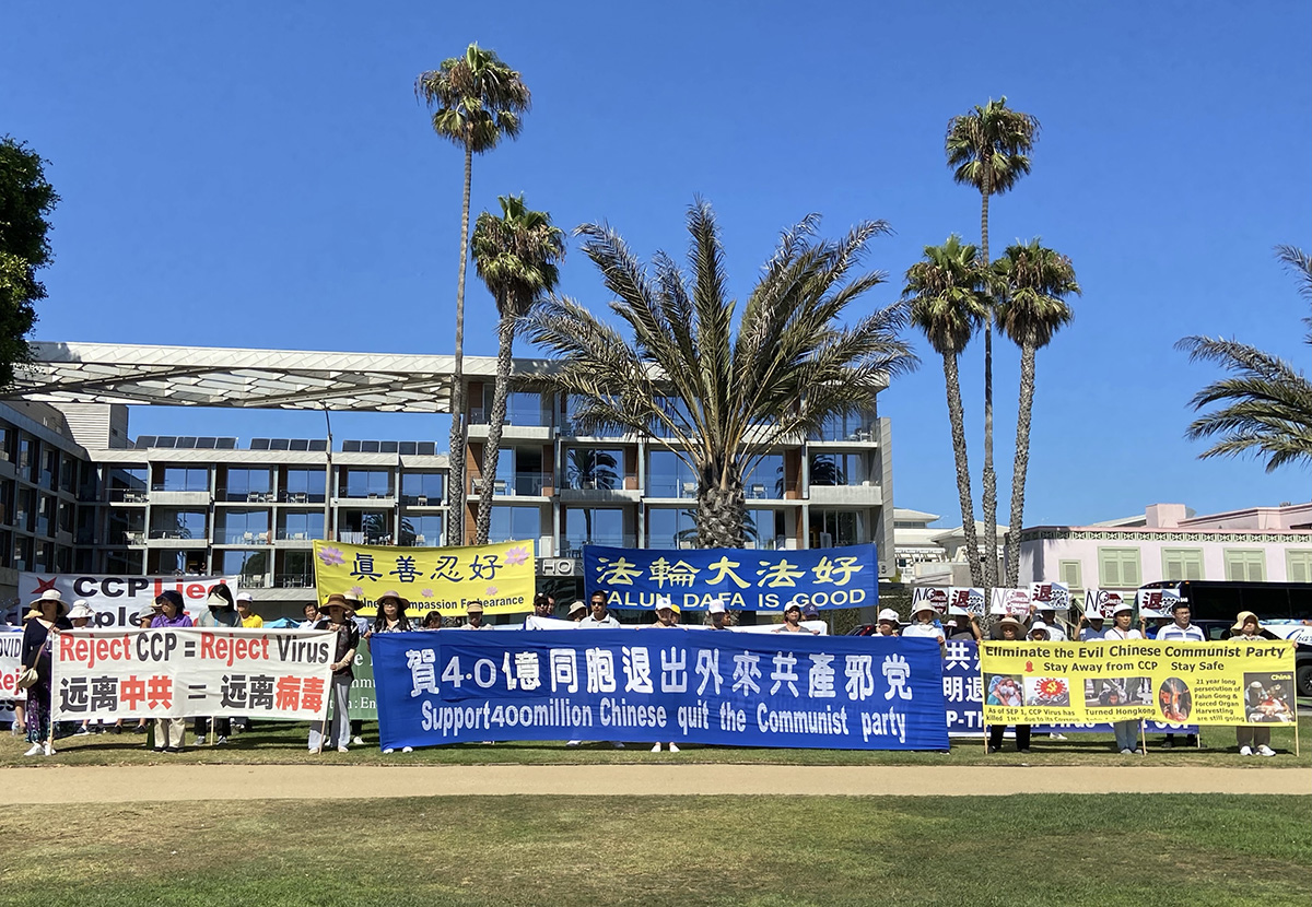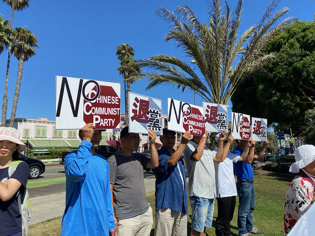 ![]() 图1~3:二零二二年八月十四日,洛杉矶退!党!服务中心在著名景点圣莫妮卡海滩集会,祝贺四亿中国人“三:退.”。 |