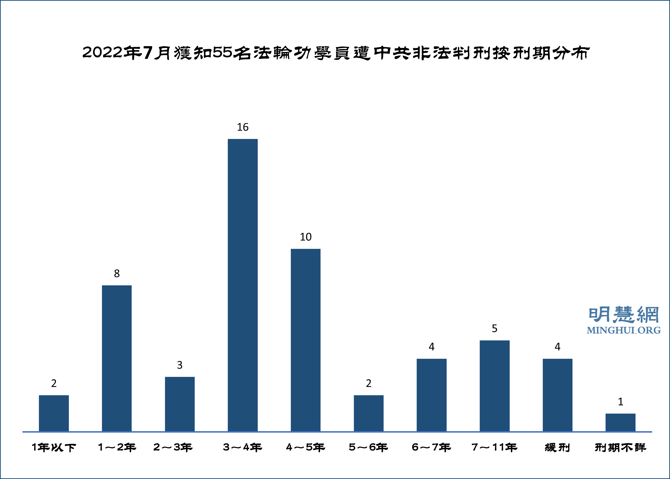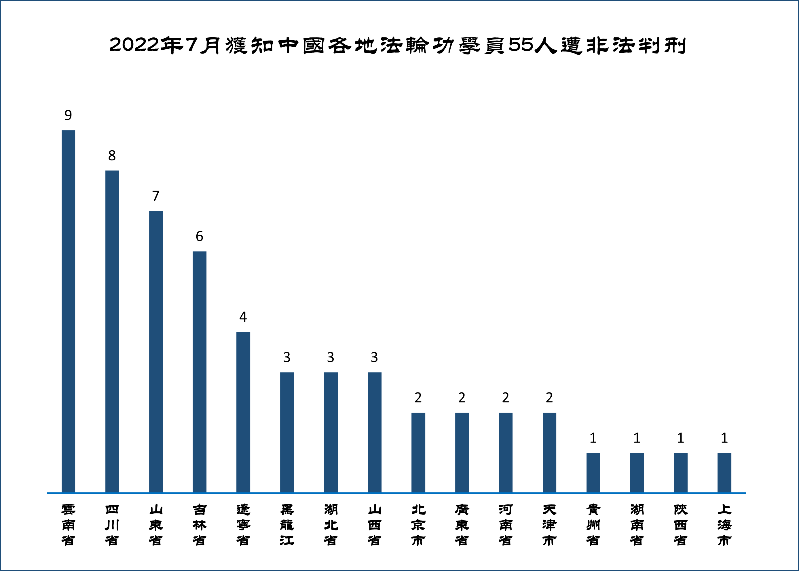 ![]() 图3:2022年7月获知中国各地法轮功学员55人遭非法判刑 |