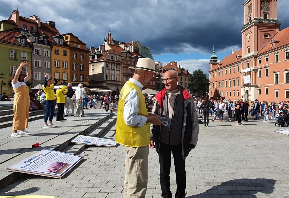 华沙的Dariusz先生观看展板后,走过来参加征签,他说:“共产党这么邪恶,不能让它再存在下去了,我永远支持你们。”