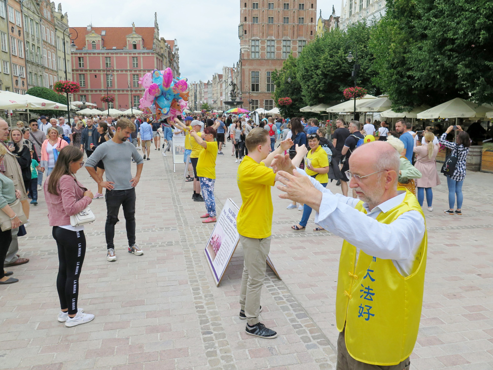二零二二年七月二十三日,二十四日,法轮功学员在波兰北部海滨城市格但斯克(Gdansk)和华沙同时开展洪法炼功活动,介绍法轮大法真、善、忍修炼理念及揭露中共邪恶本质,举办反活摘、诉江等征签活动。