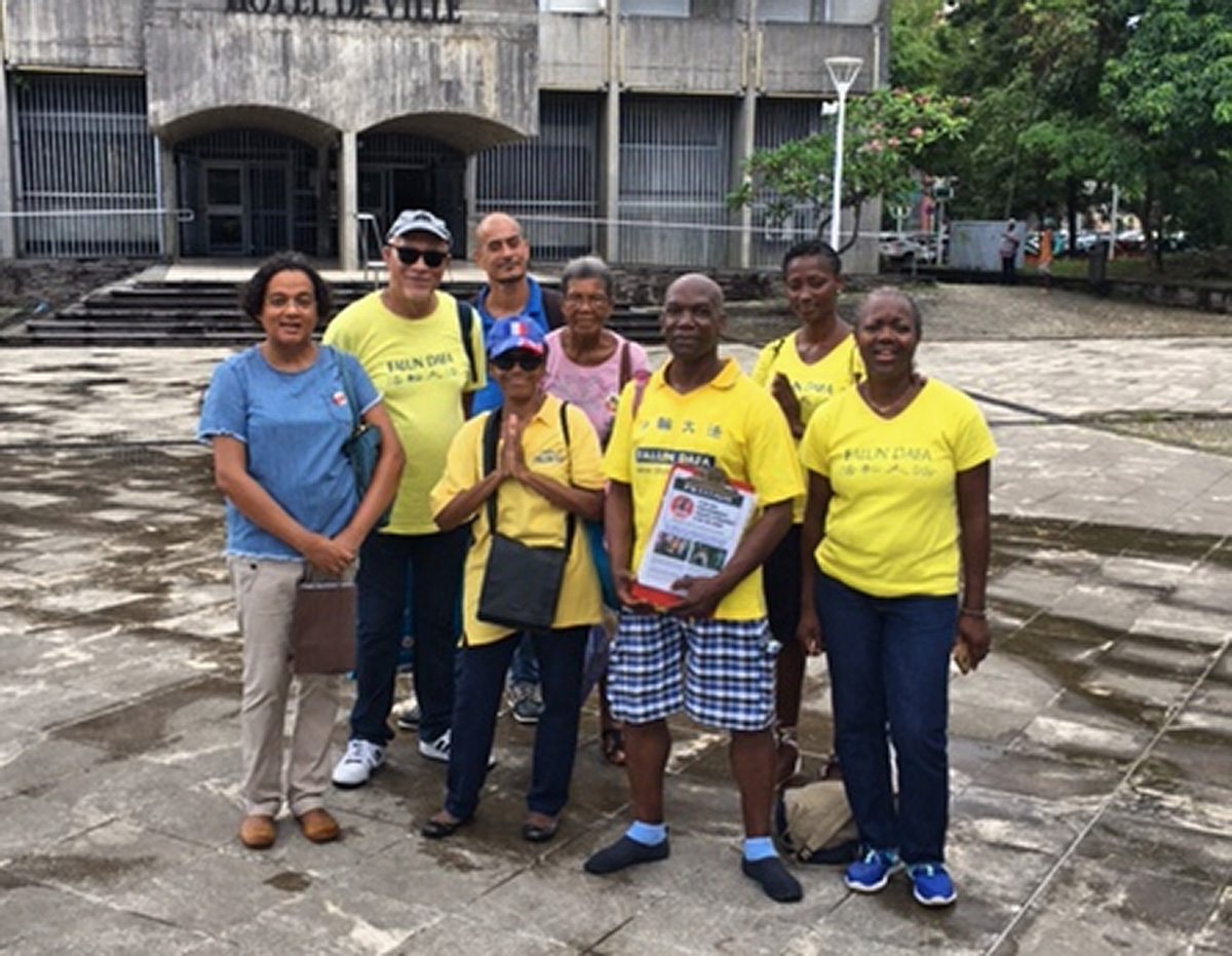 七月二十日,法轮功学员在皮特尔角(Pointe-à-Pitre)市政府前及周边的街道向过往路人讲真相。