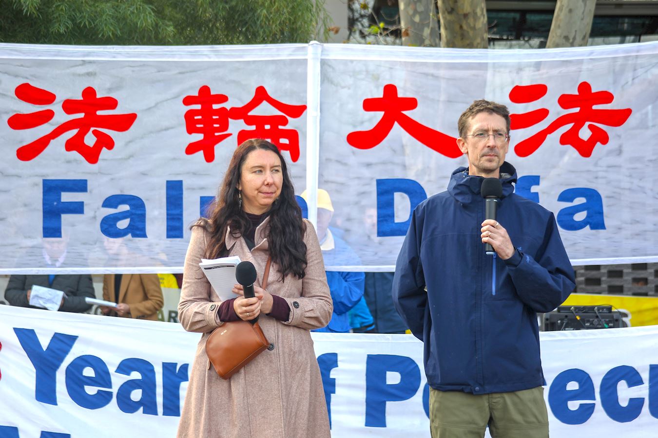 ![]() 图1:二零二二年七月九日,在墨尔本 “七二零”反迫害集会上,霍尔夫妇讲述了二十年前到天安门广场请愿的经历。 |
