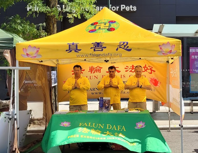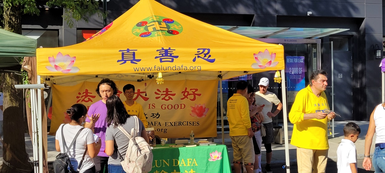 在纽约市的开放街道上每年夏天都有街市。纽约地区的各种供应商将聚集在这些展会上,他们展示和销售他们的产品。许多当地人和游客会在夏天与家人或朋友一起漫步在这些街市的道路上。每年法轮功学员们常常以亮黄色的T恤,祥和的功法展示吸引着集市上人们的目光,为当地社区带来真相和健康的信息。