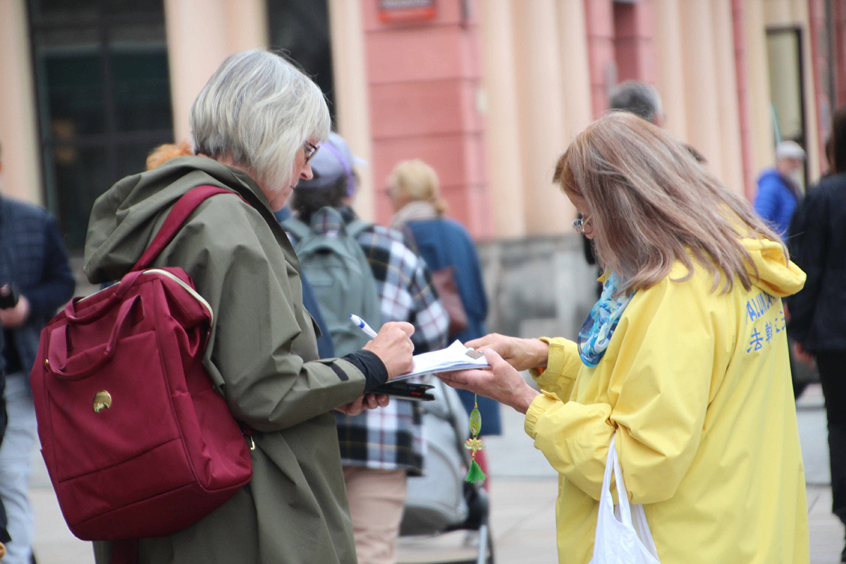 法轮功学员身体力行的善行让她欣然签名支持法轮功:“我当然应该支持这样的征签,签名的人越多,会有更大的影响,更容易实现目标。”而且她也非常清楚中共迫害法轮功是因为:“(中共)政权控制着,不让人们有自己的想法。”
