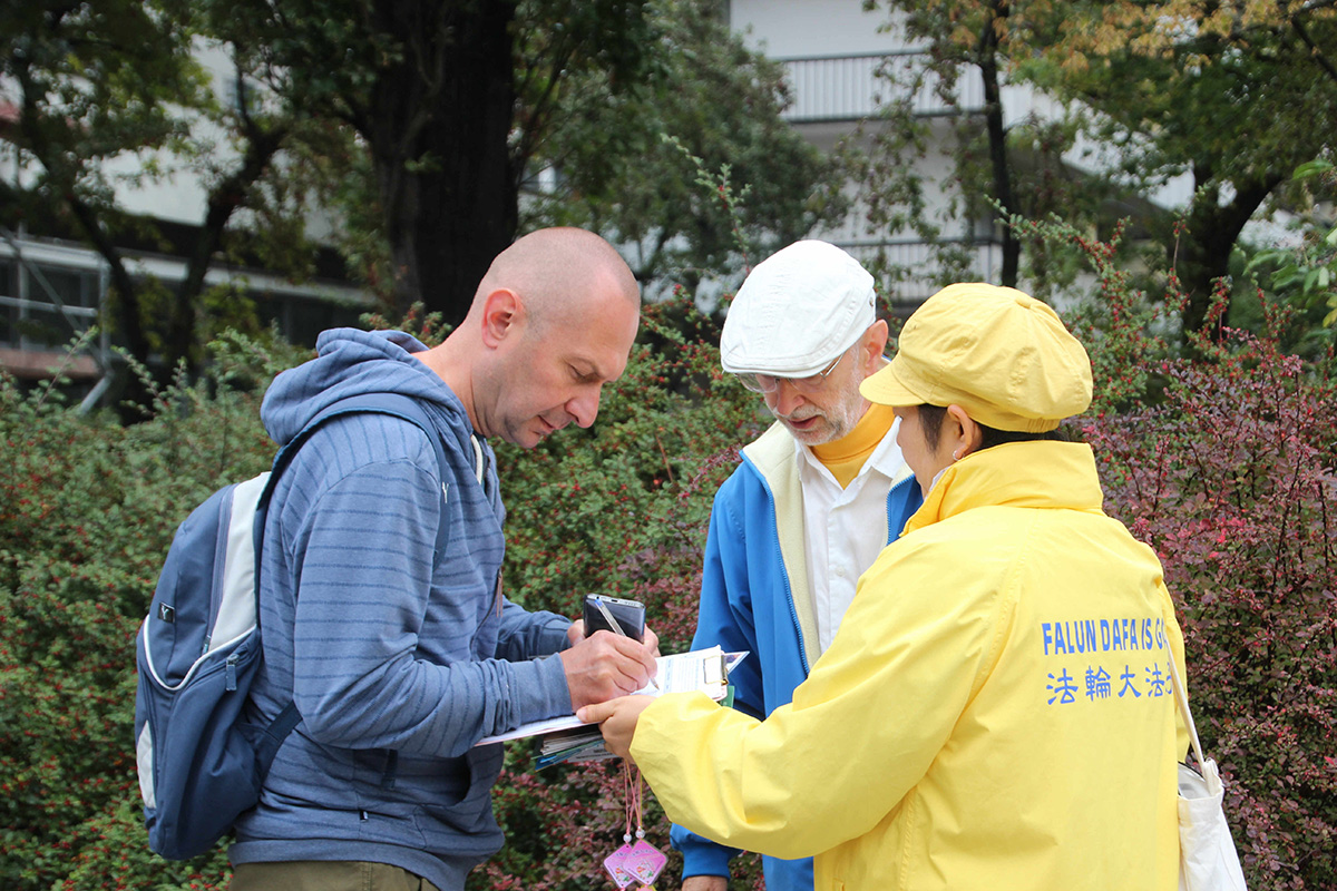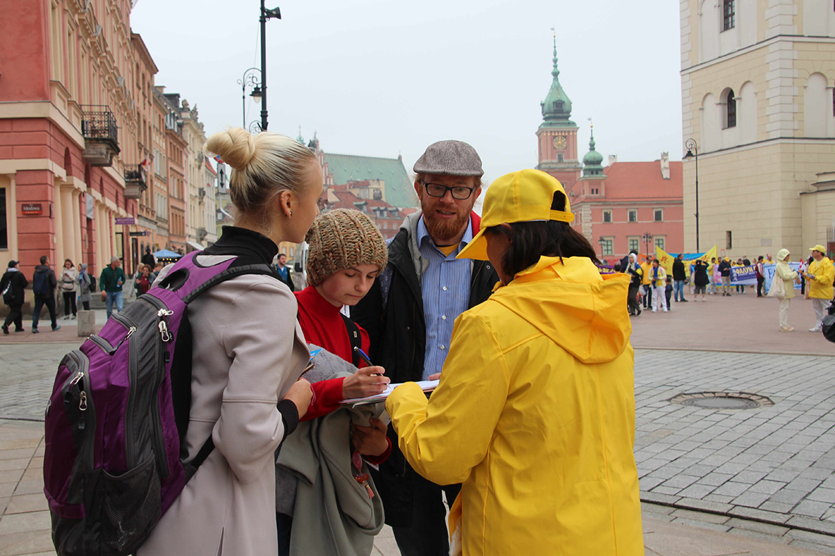 但是斯维泰克也从游行队伍打出的横幅中清楚的了解到法轮功学员遭到中共的迫害:“让人遗憾的是,他们在中国,在自己的国家遭到迫害。”他当下签名支持法轮功学员,并打算将自己录的视频与朋友分享,希望能有更多人了解相关讯息,他认为:“有越多的签名越能更接近目标,也会有更大的影响力。”