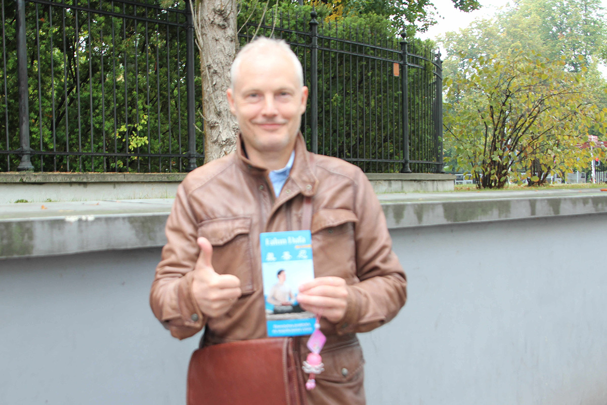 他也非常感谢法轮功学员的付出:“法轮功学员与人分享非常好,特别是他们有这样的勇气与人分享这样的讯息,无所畏惧。在当下,很多人都把精力放在名利上。但法轮功学员走出来,告诉人们在中国发生的这一切,真是太好了。”最后他祝法轮功学员好运,并谈到:“跬步千里,终将成功,实现目标!”