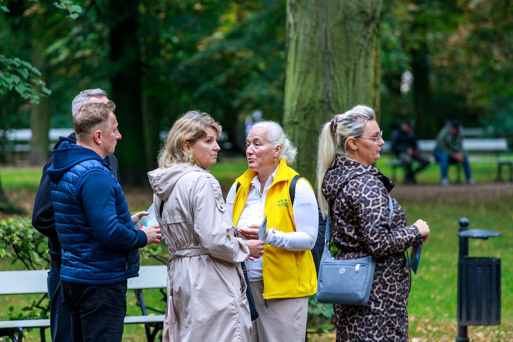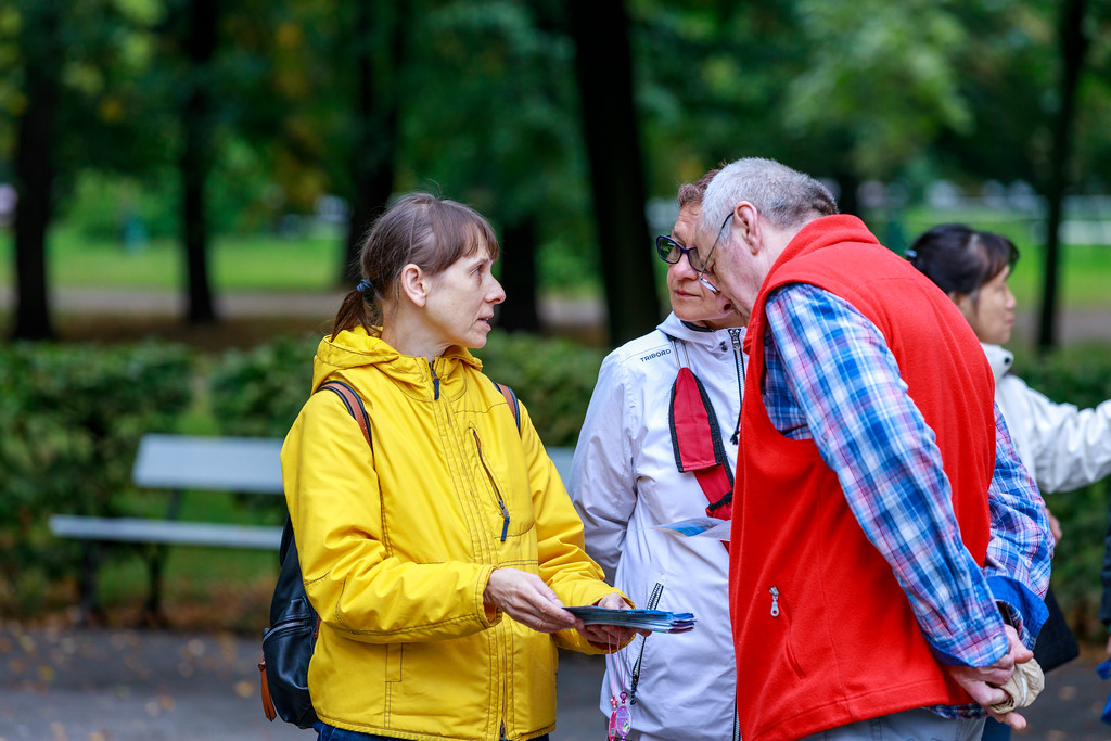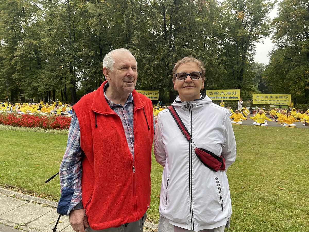 莉迪亚(Lidia)从别的城市来华沙旅游。当他们看到有这么多人在清晨安静的公园里炼一种缓慢舒展当功法时,不由自主地停下来脚步,莉迪亚:“他们看上去很放松很祥和。”在旁边的一位法轮功学员走向他们,给他们介绍更多情况。