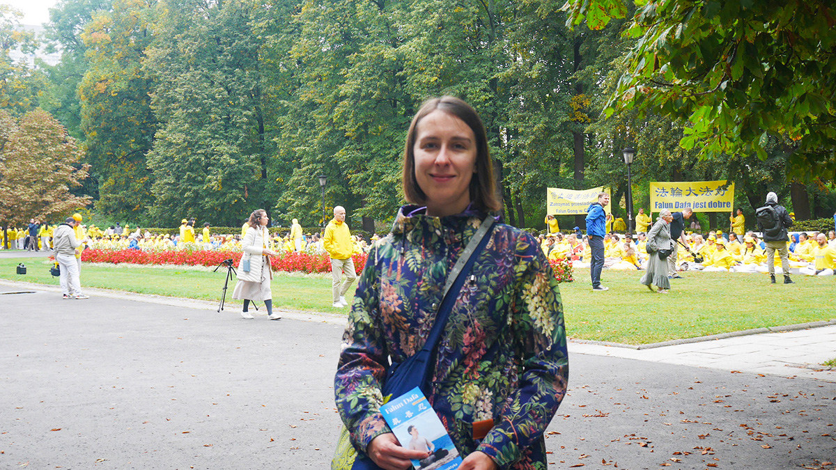 交谈中她得知眼前祥和的法轮功学员在中国被迫害,甚至被活摘器官牟利时,她流泪了。泪水顺着她的脸庞不停地流,她抬手擦了一下脸上的泪水说:“这样的迫害太残忍了,我很难过,因为我知道,共产党迫害人民有多可怕,波兰人民同样经历过那个艰难的时代。”