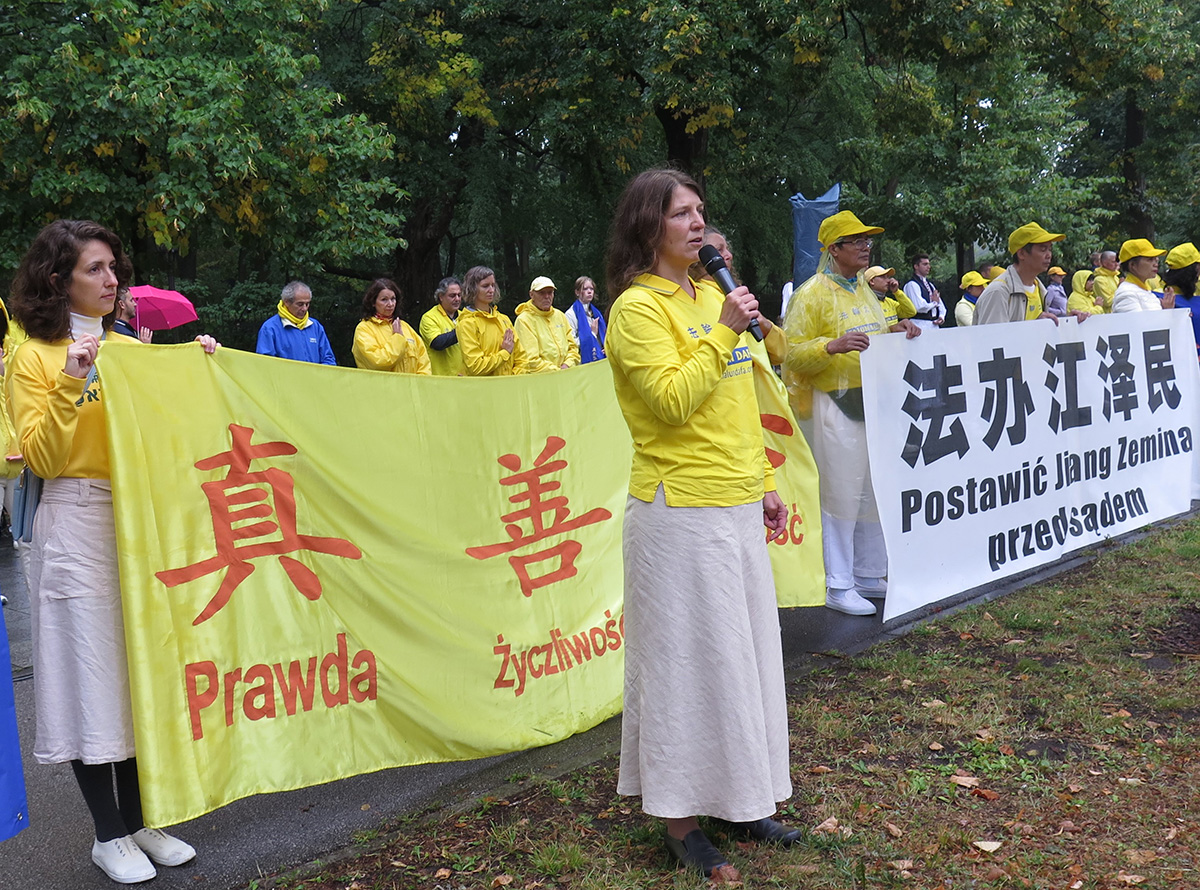 晨炼结束后,玛丽亚·萨尔兹曼(Maria Salzman)代表波兰法轮功学员在总理府前向各界表示,波兰曾在历史上,在遭受屠杀和种族灭绝时没有屈服于暴政。她呼吁波兰人在法轮功学员遭受中共暴力迫害的时候,应当站出来捍卫法轮功所代表的真善忍道德价值。