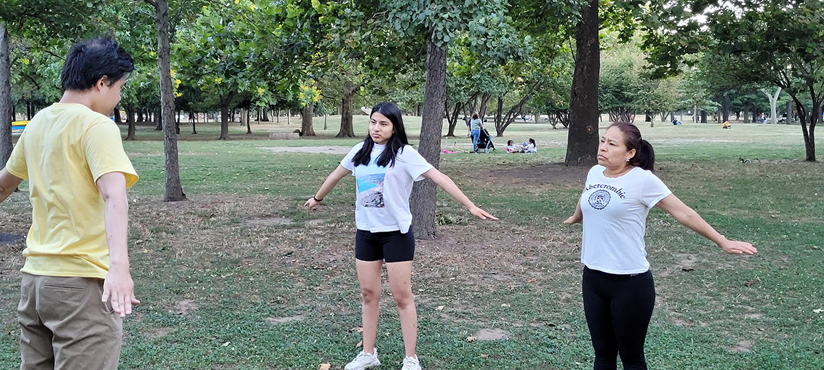 ![]() 图1~3:法轮功学员在法拉盛梅多斯-科罗娜公园内炼功 |