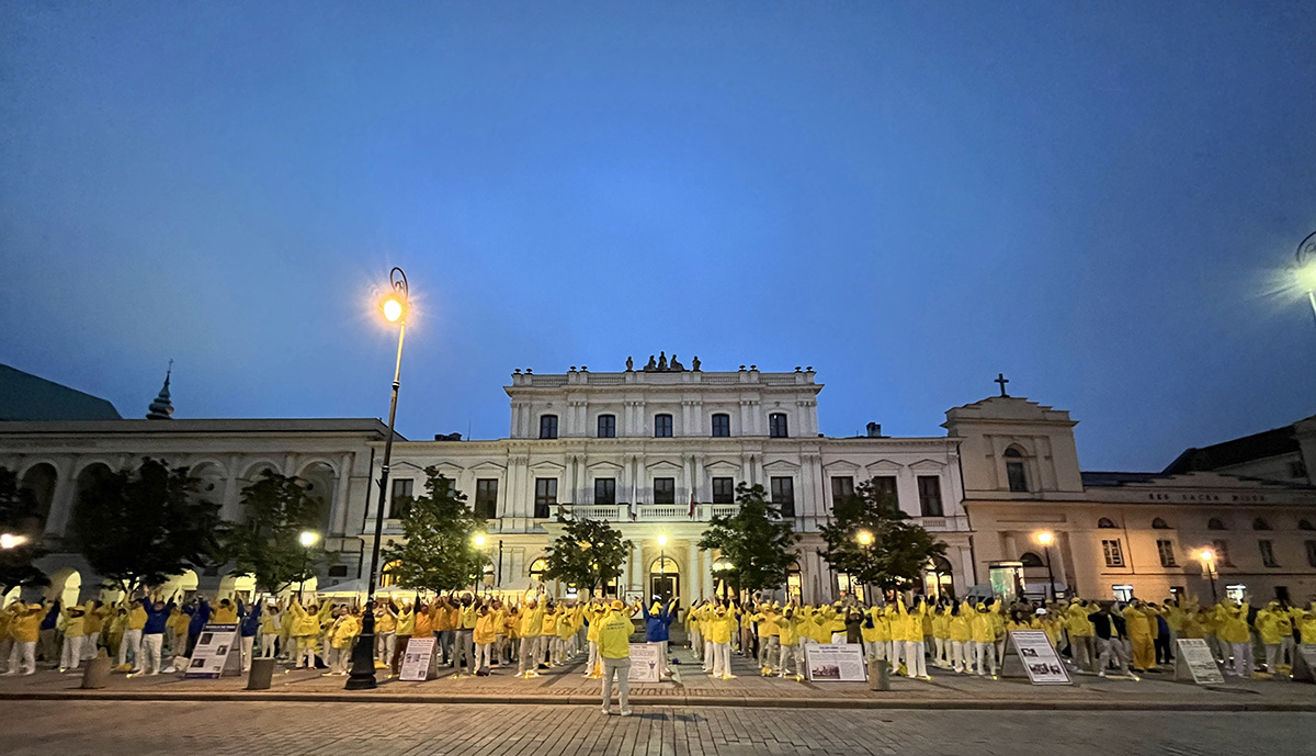 ![]() 图1:二零二二年九月十日晚,欧洲法轮功学员在波兰首都华沙举办烛光悼念活动 |