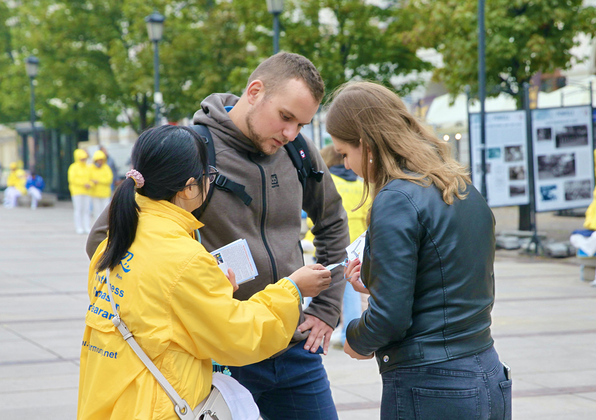 “我读了传单,了解了中共迫害法轮功学员的事,因此签名。”曾在共产波兰生活过的她说,“在我们波兰也有过类似的情况,如果反对共产党就会遭受迫害。尽管也许迫害的形式不同,但还是有相似之处。”