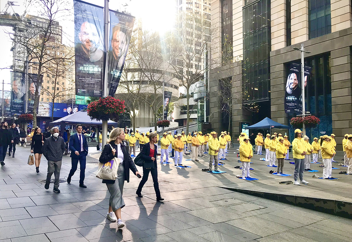 ![]() 图1~2:二零二二年九月八日,悉尼上班族在晨曦中迎来法轮功学员展示的法轮功第五套功法静坐。 |