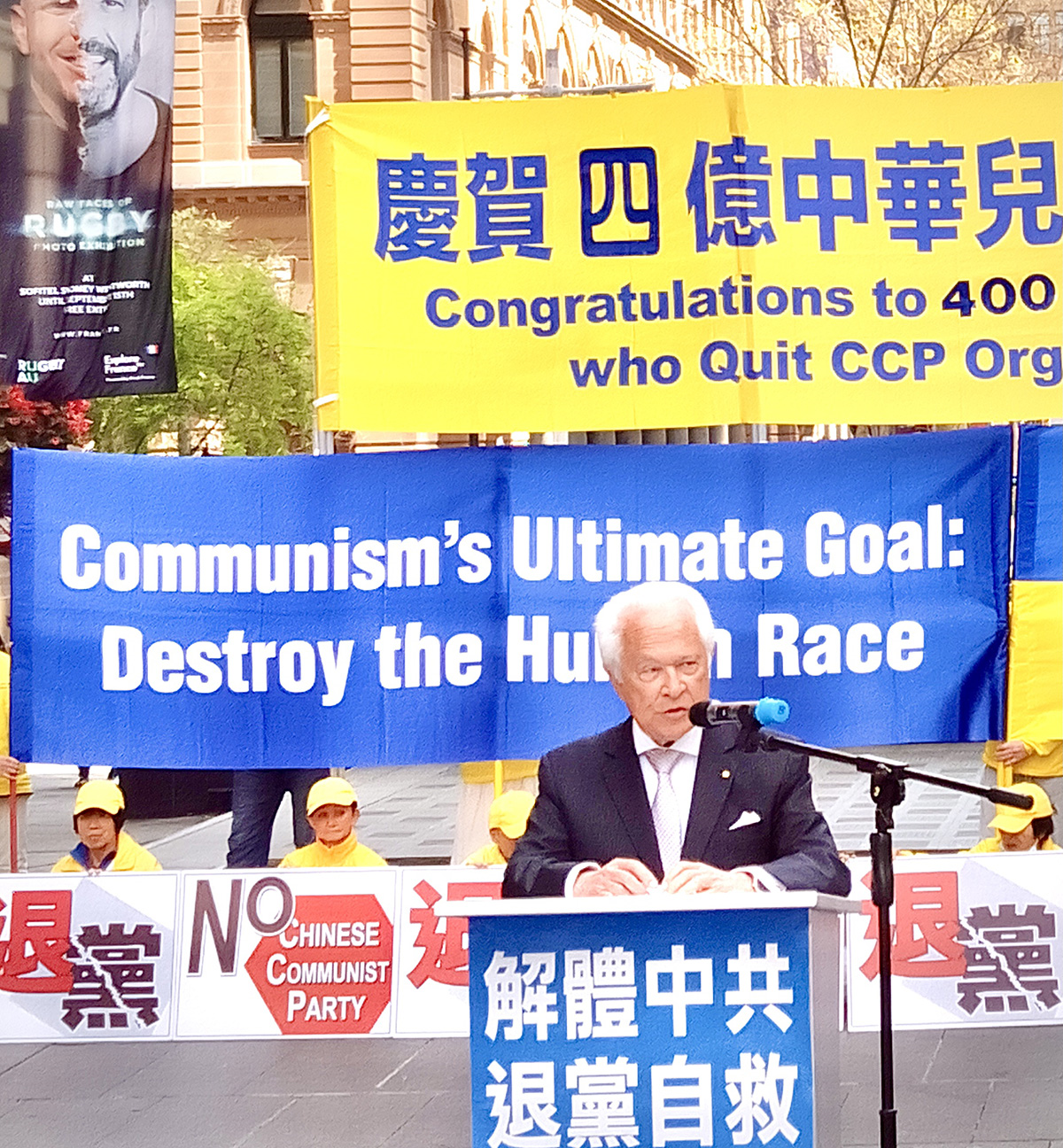 基督民主党前领袖尼罗(The Rev Hon Fred Nile MLC)的太太西尔瓦娜·尼罗(Silvana Nero)来的集会,代读丈夫的支持信。信中说:“中共的暴行是对人类精神的破坏,它完全奴役了一个民族。我为那些勇于退出中共的人鼓掌。人类对共产主义付出的代价已经太高了。”