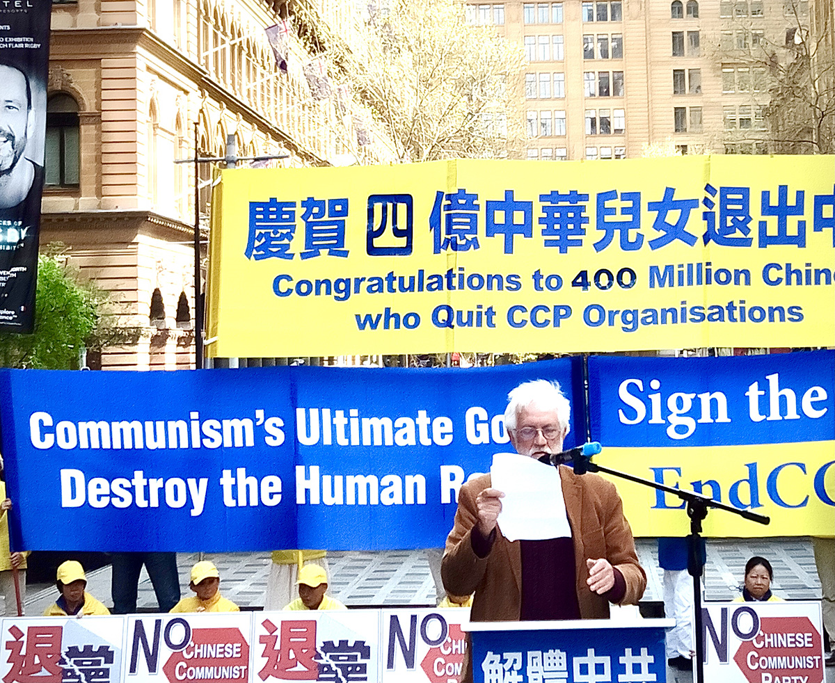 “中国共产党政权受害者澳纽地区联盟”主席、中国问题学者、悉尼科技大学教授冯崇义博士(Dr Feng Chongyi)在发言中表示:“任何人都没有借口与这个邪恶组织和邪恶政权交往。”