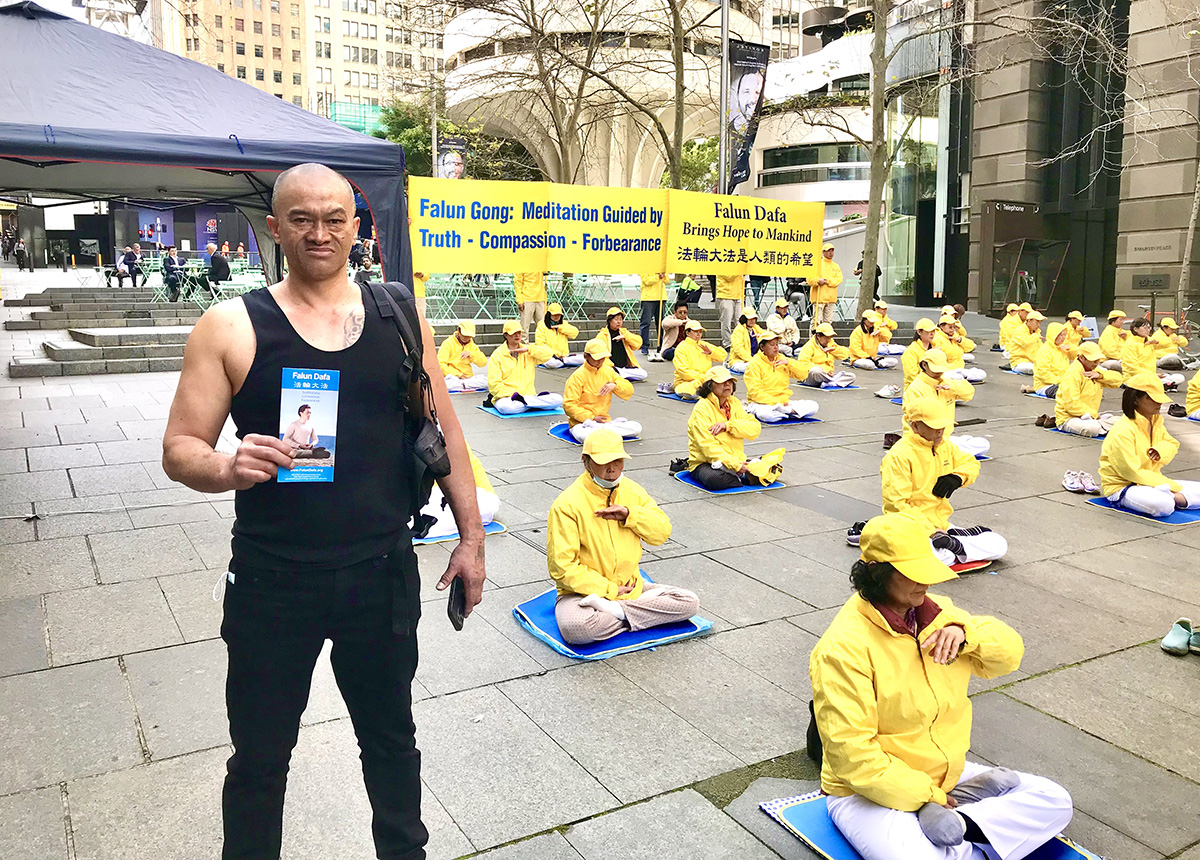 布劳顿(David Broughton)被法轮功学员炼功的祥和能量场吸引,他说:“中共迫害法轮功学员是非常邪恶的,每个人都应该有自己的信仰,不应由独裁者来统治。世界需要真、善、忍。”