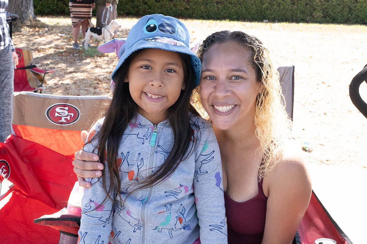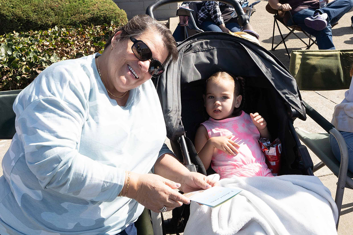 ![]() 图10:纽瓦克居民迪娜(Diena)带着她的孩子坐在路边观看游行:法轮功的队伍会给纽瓦克市带来美好 |