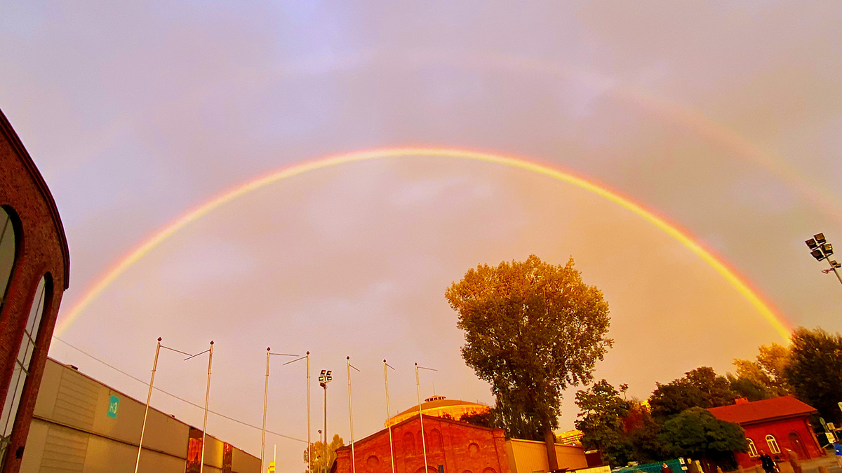 法会结束后,几天来一直灰蒙蒙的天空出现了双层彩虹。