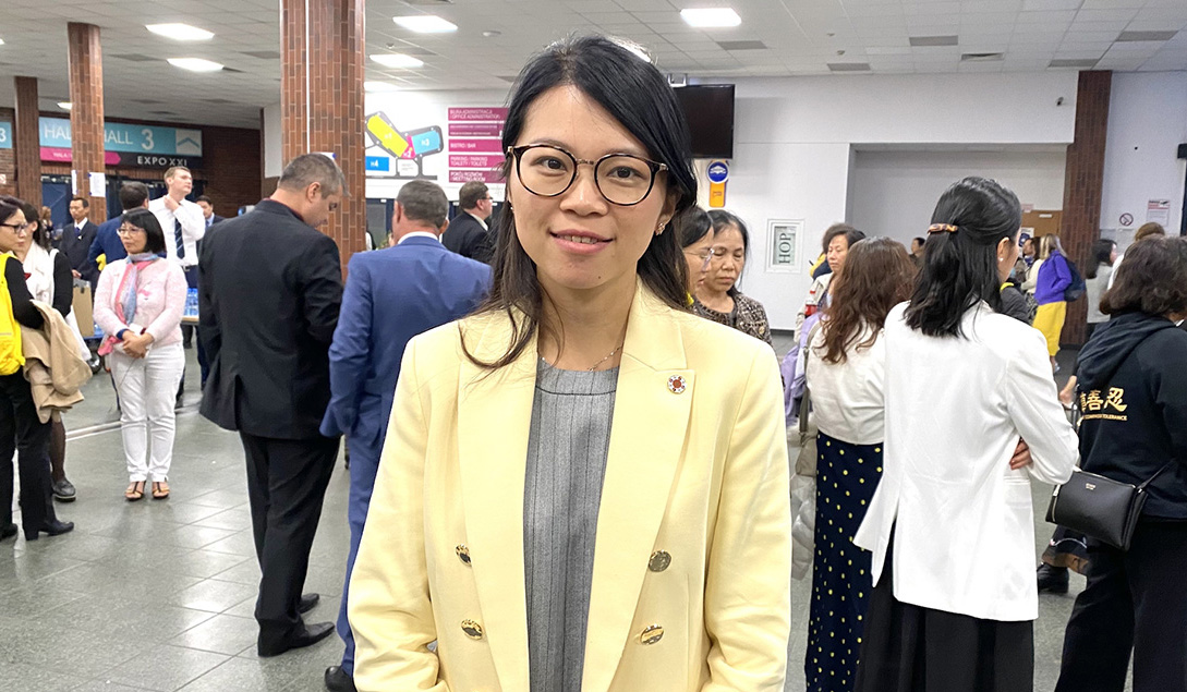 来自芬兰的越南裔法轮功学员阮女士(Nguyen)是用户体验设计师(UX-Designer),“能有机会参加法会让我感到荣幸,看到会场上师父的法像,感到法会的重要,这是一个非常重要的机会。”