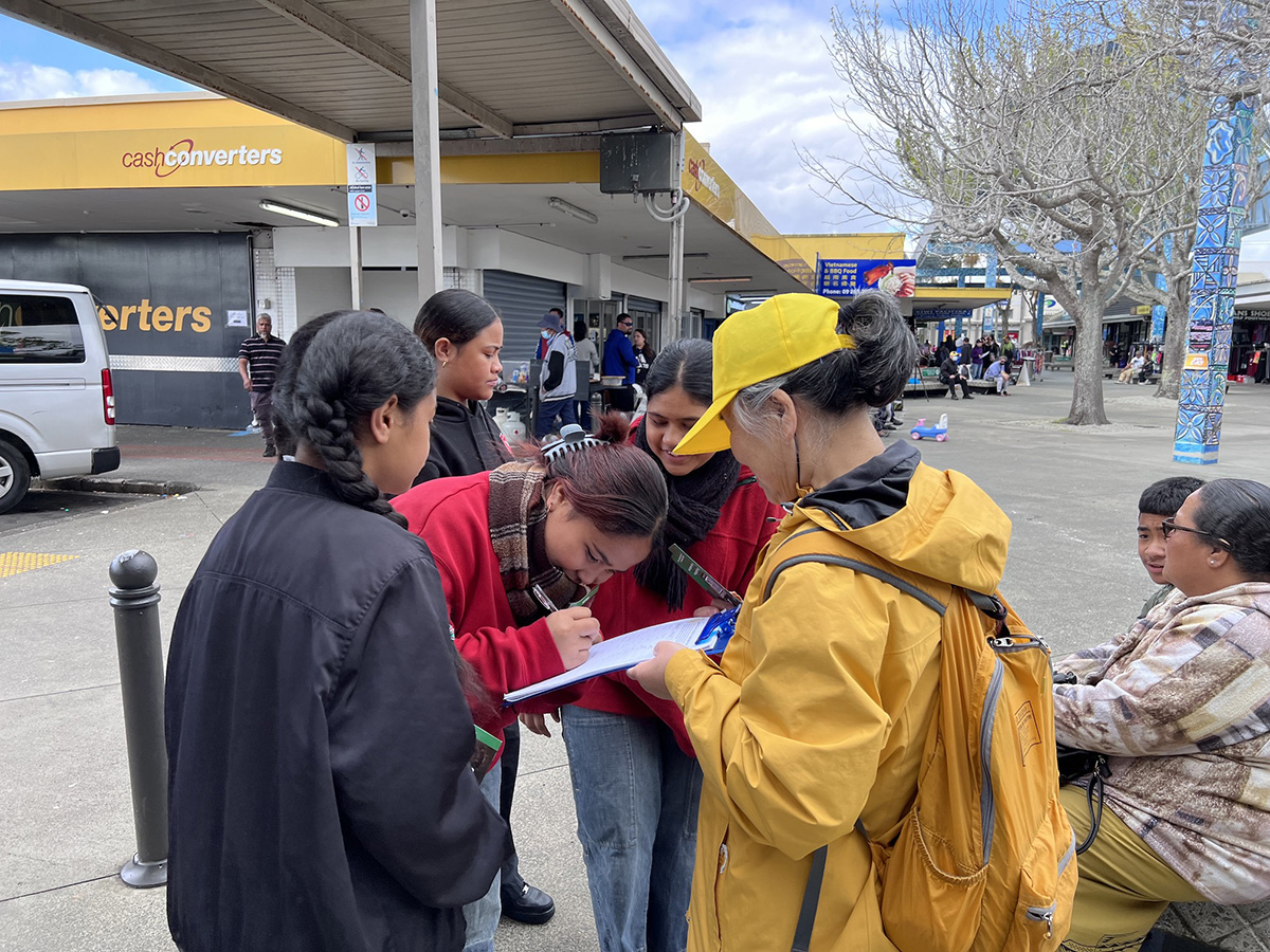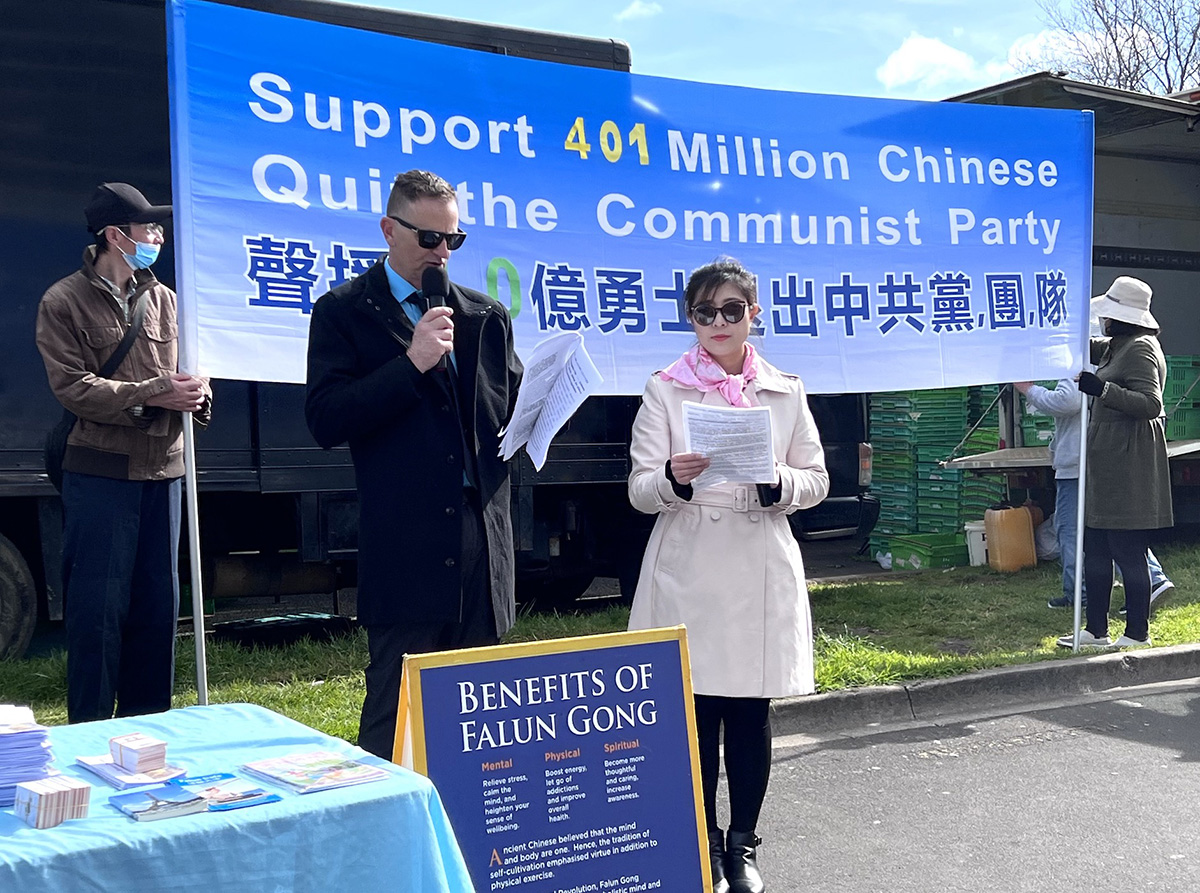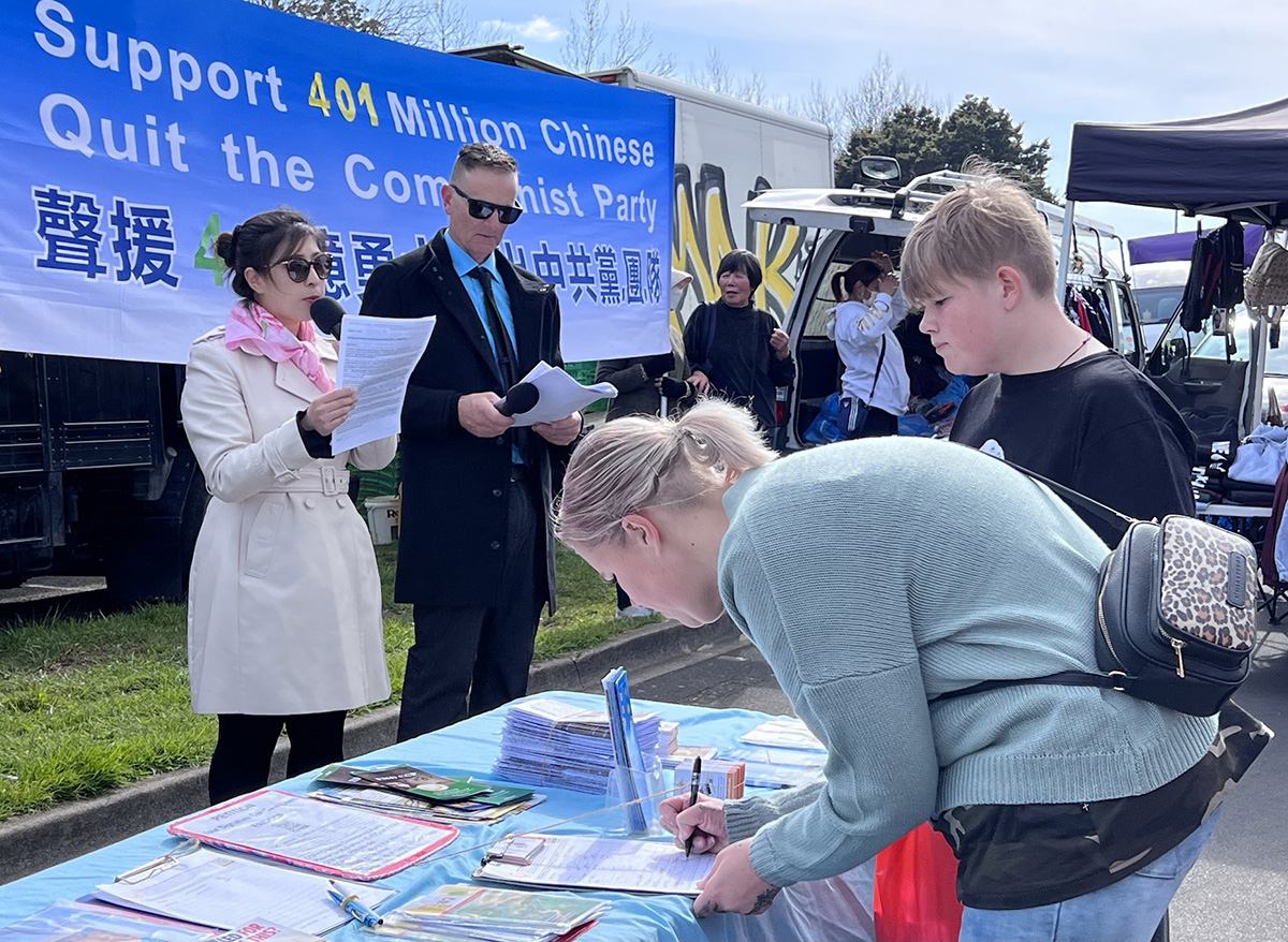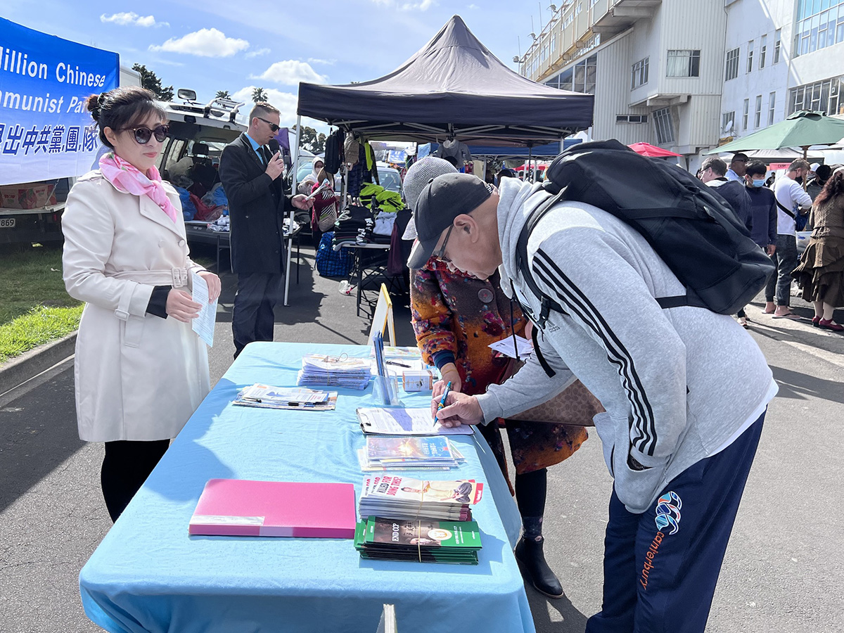 ![]() 图4:二零二二年九月十七日法轮功学员在奥克兰南区(Otara)的农贸市场集会庆祝四亿同胞退出中共 。 |
