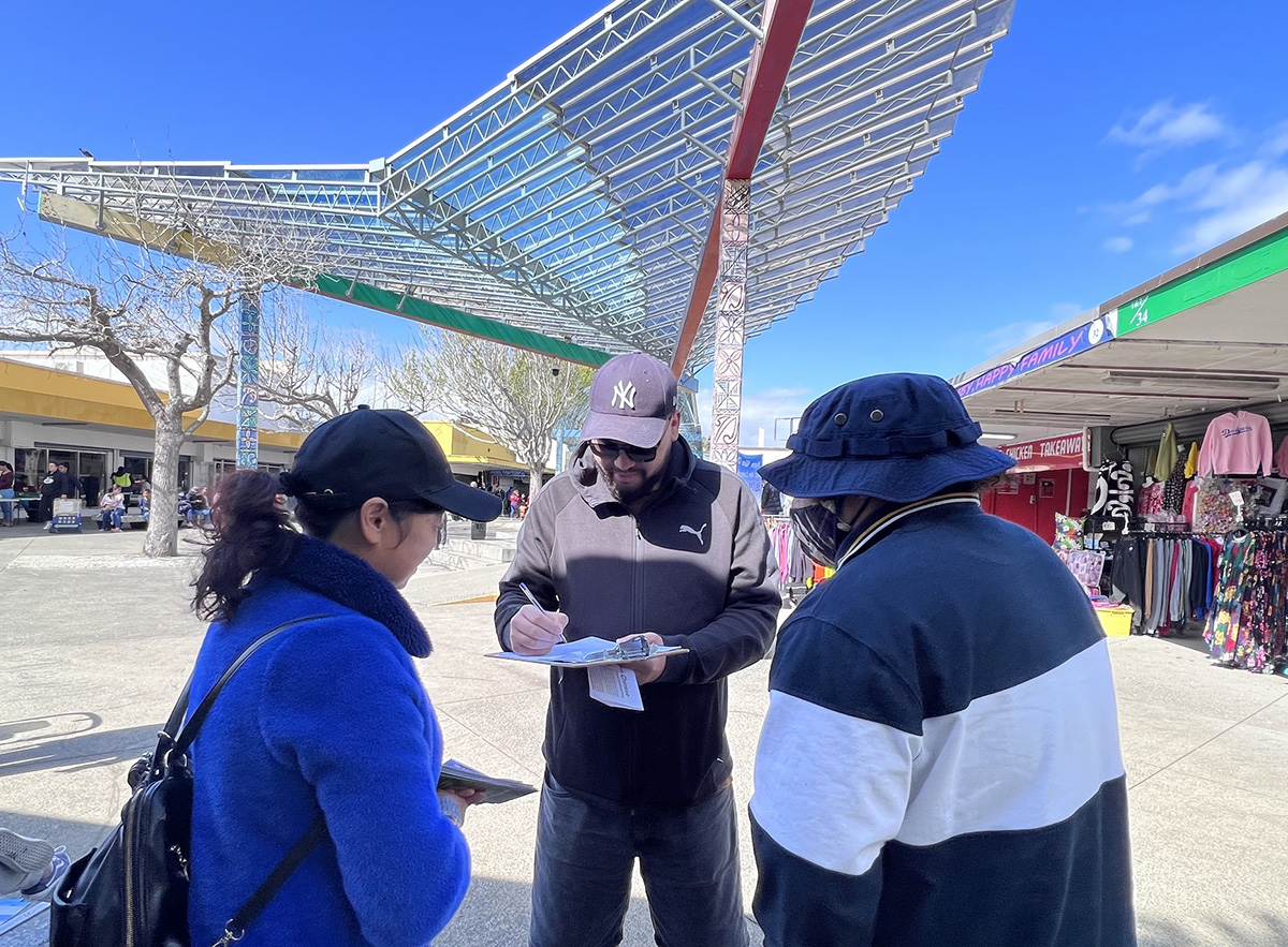 ![]() 图1~3:二零二二年九月十一日法轮功学员在奥克兰西区(Avondale)的农贸市场集会庆祝四亿同胞退出中共,民众签名支持 。 |