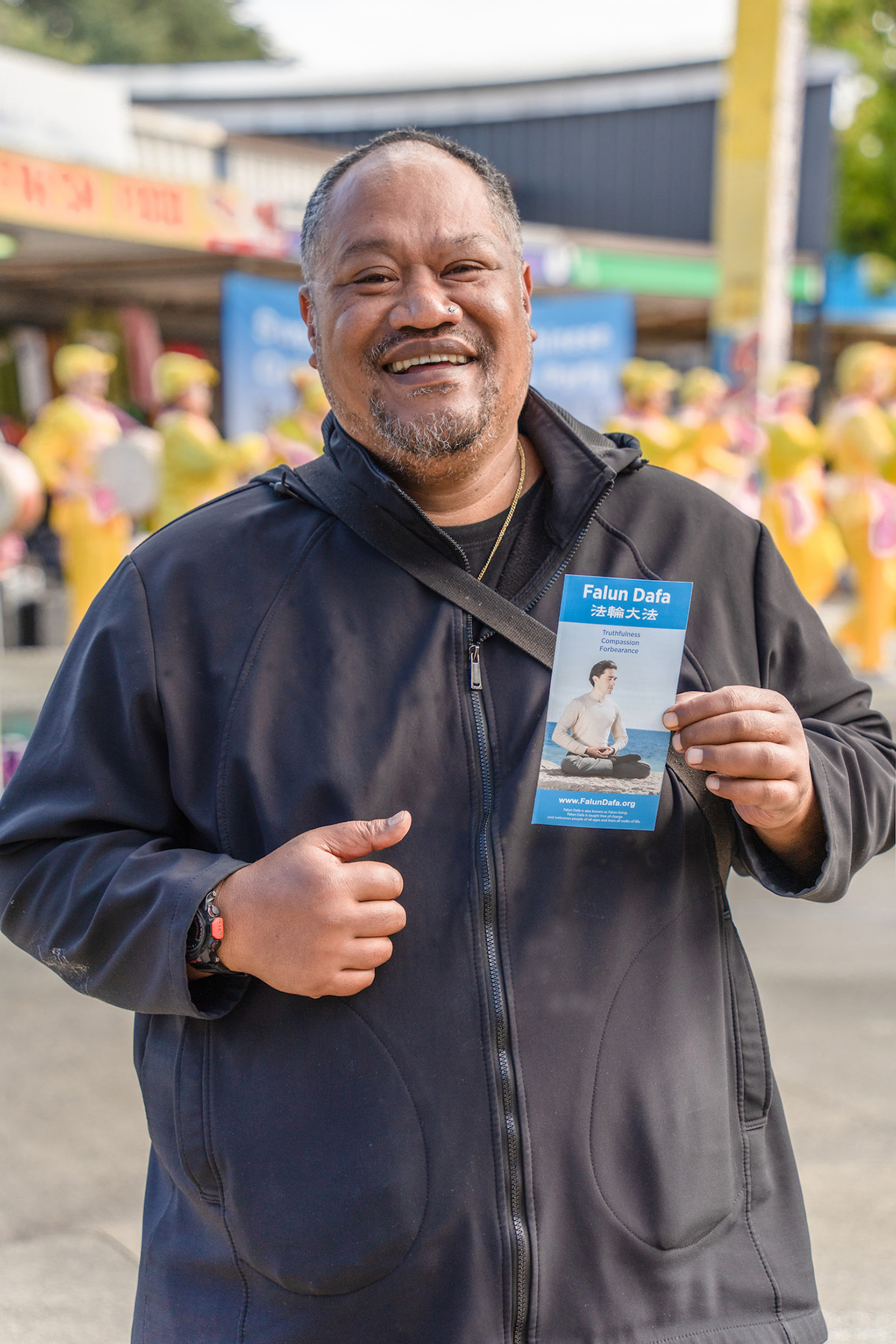 他最后还赞赏法轮功学员们做得很棒,能量很强,他们的表演也非常触动人心,让他感动。