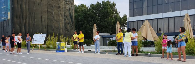 二零二二年八月十五日,法轮功学员来到南伊芙利亚(Eforie Sud)海边设立真相点,传播法轮功的真相。游客驻足观看。