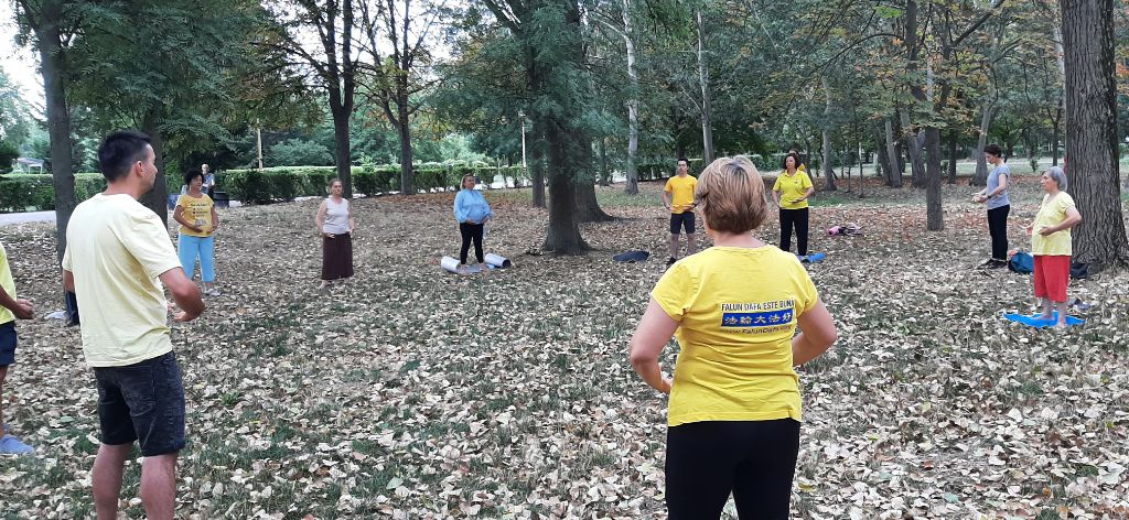 ![]() 图11~12:在八月十一日至十六日,学员们到海边传播法轮功真相活动之际,每天早上,学员们都在康斯坦察州Tăbăcărie公园的炼功点炼功。 |