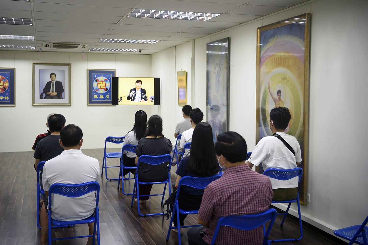 ![]() 图1:新学员们观看法轮大法创始人李洪志先生的讲法录像。 |