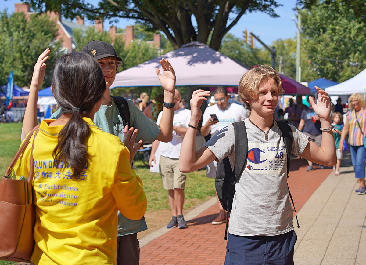 特拉华大学学生莱克西·伊里扎里(Lexi Irizarry)和朋友詹姆斯·加斯帕里尼(James Gasparini)也驻足观看了功法演示很久。加斯帕里尼表示:“我感到很平和,主持人的讲解很好,让我了解整套功法。真是令人心态平和的体验。”当了解到法轮功在中国被迫害的真相后,他表示:“这(迫害)是非常不合理的。”