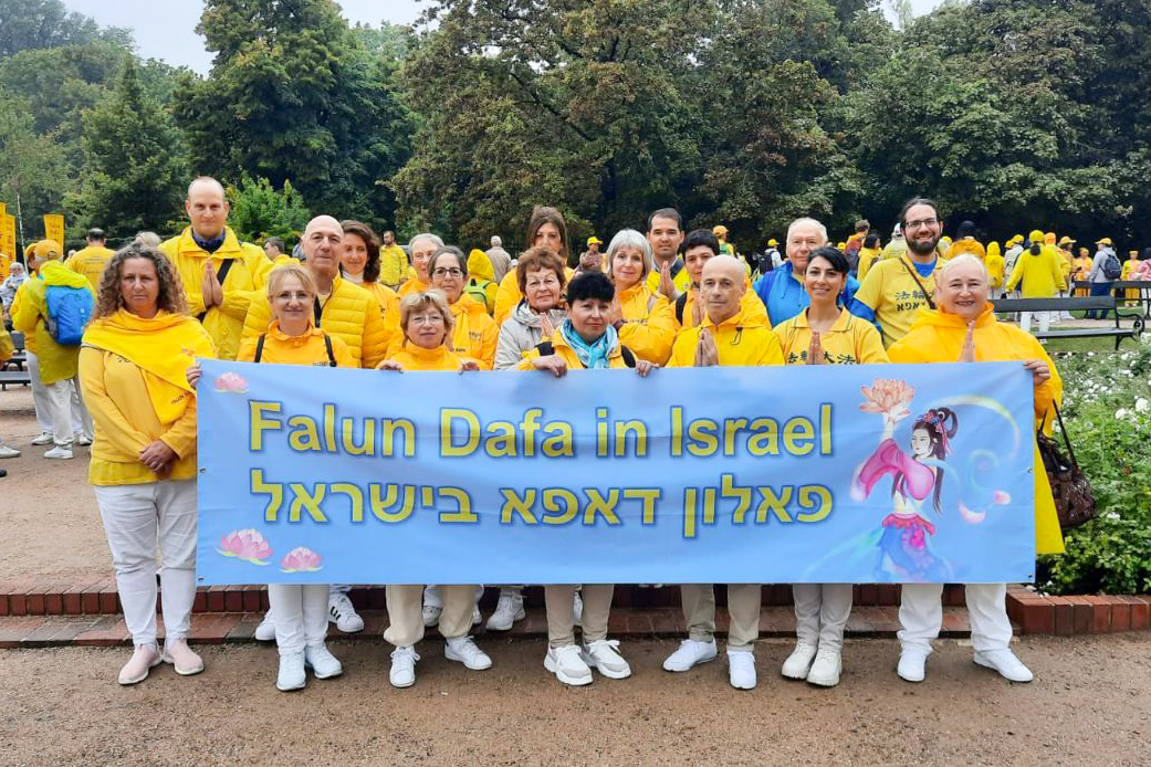 ![]() 图2:参加炼功的以色列法轮功学员集体合影 |