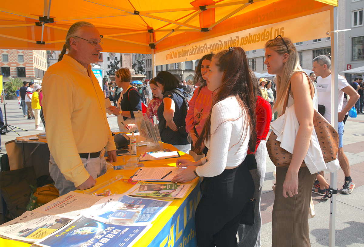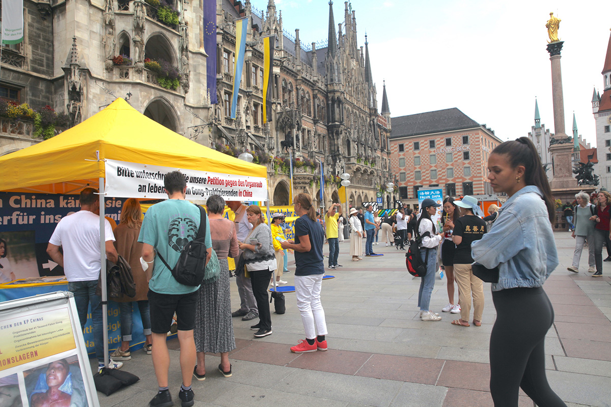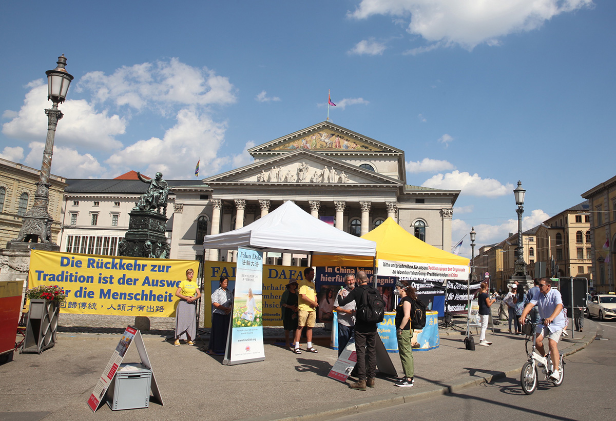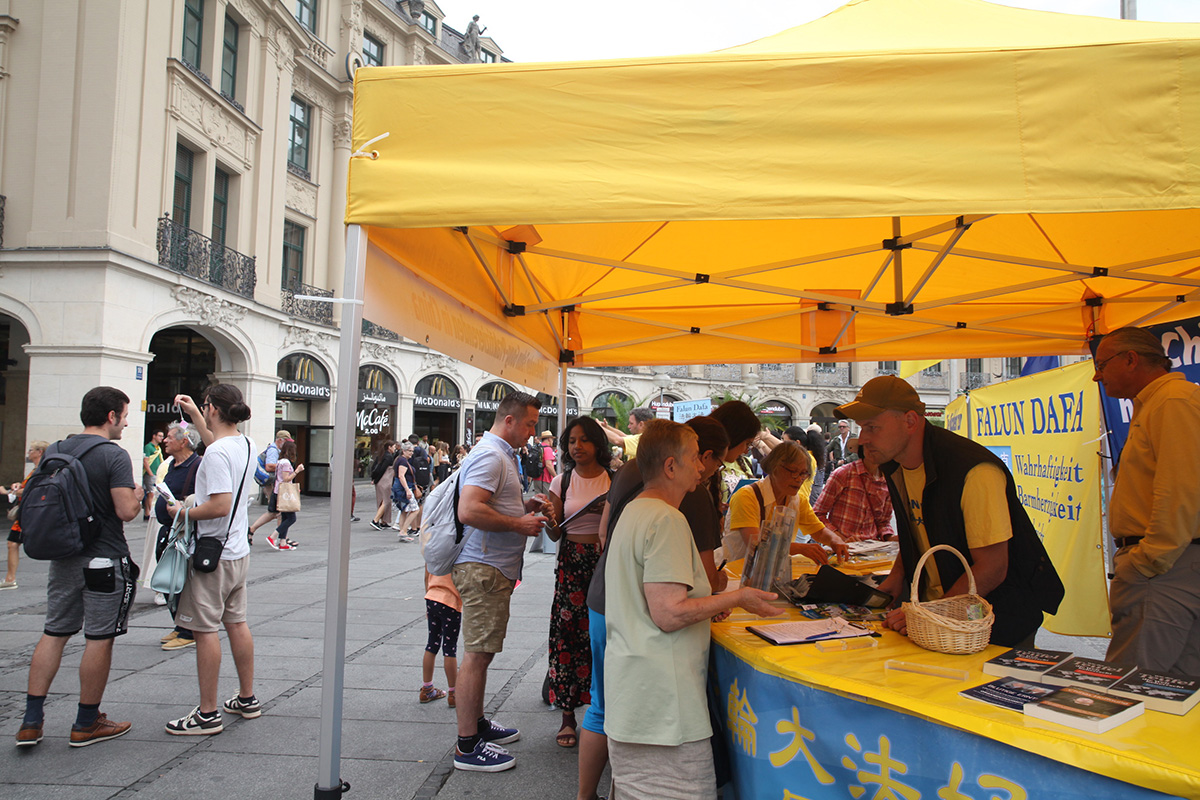 二零二二年七月到九月二十五日,法轮功学员分别在卡尔斯广场、慕尼黑王宫和国家歌剧院前、哈阿斯广场、玛利亚广场、慕尼黑啤酒节举办传真相活动,人们纷纷签名声援法轮功学员反迫害。