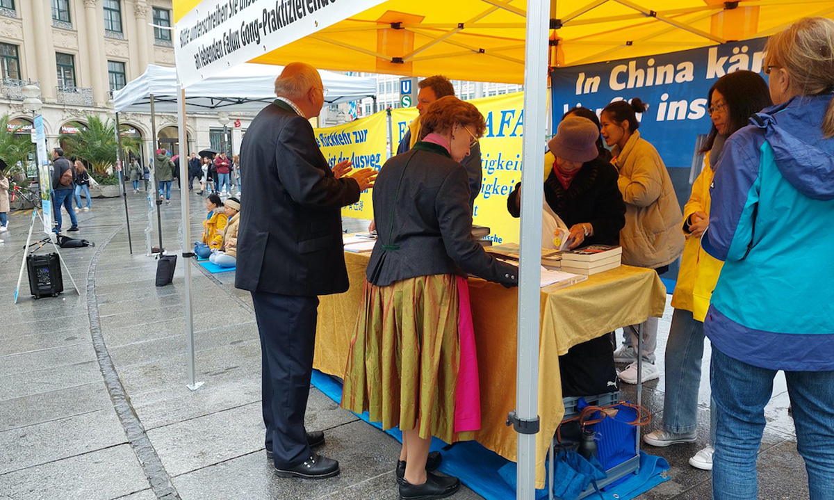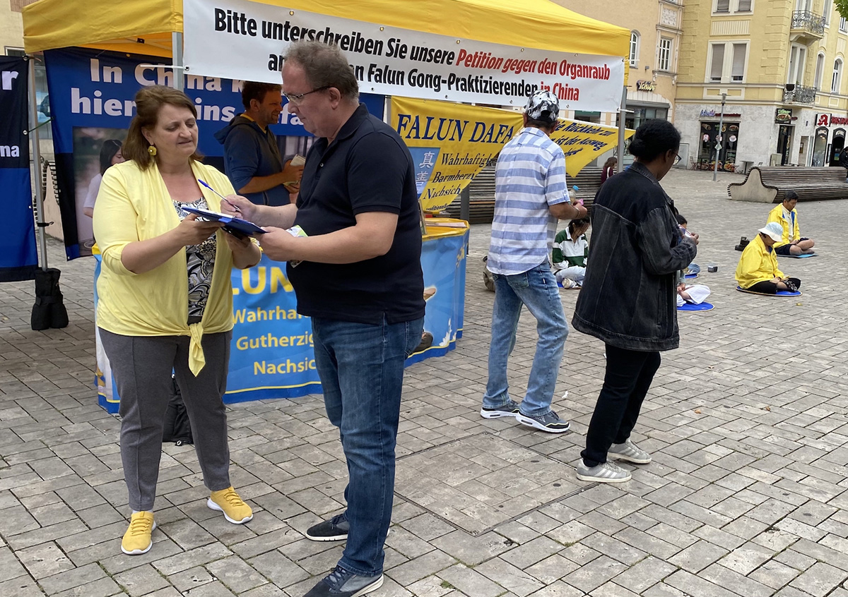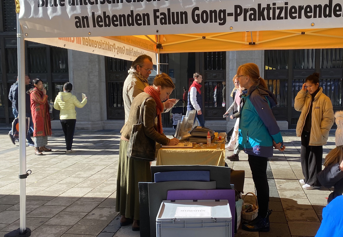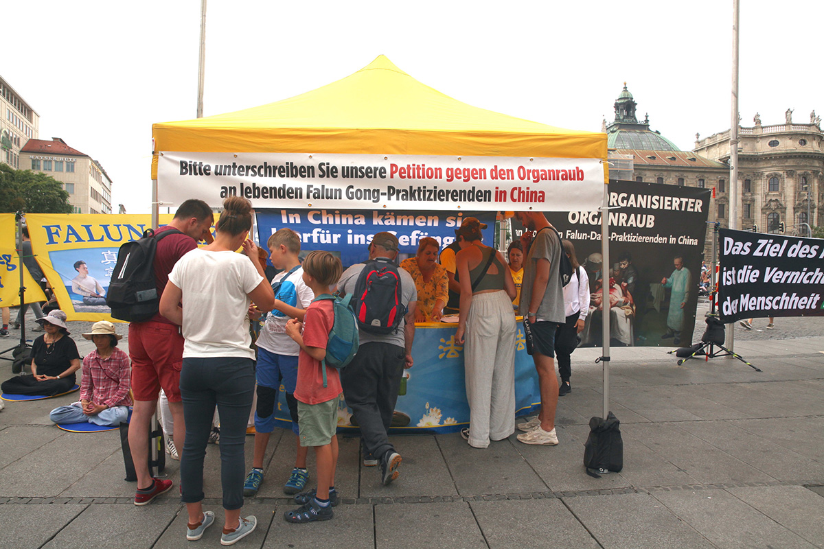 二零二二年七月到九月二十五日,法轮功学员分别在卡尔斯广场、慕尼黑王宫和国家歌剧院前、哈阿斯广场、玛利亚广场、慕尼黑啤酒节举办传真相活动,人们纷纷签名声援法轮功学员反迫害。