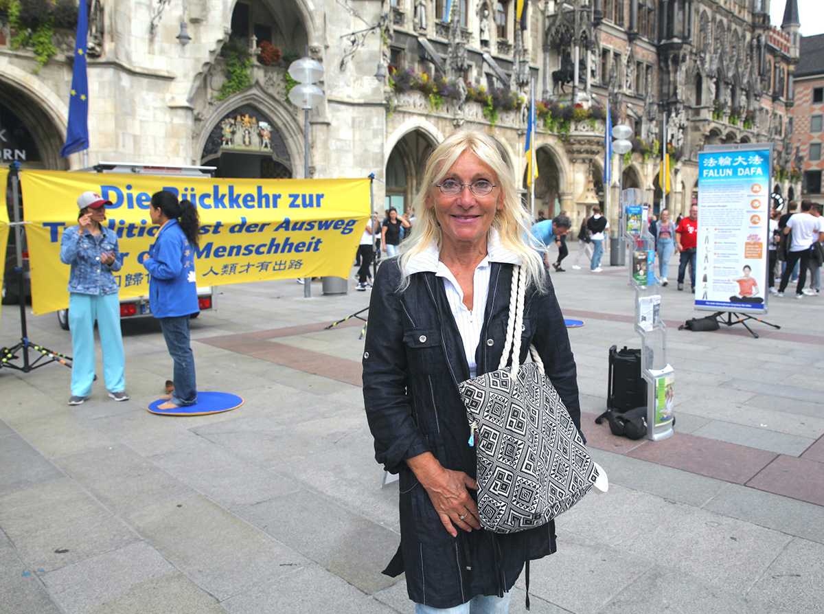 一位华裔女士有次在卡尔斯广场(Karlsplatz)看到法轮功学员的信息台并遇到一位认识的女学员,她非常激动,跟那位女学员交谈了很久。期间,她一边擦着眼泪一边说:“你们二十多年来一直在坚持,很少有人能做到,我也想能这么做,但我觉得自己做不到。我非常佩服你们。”