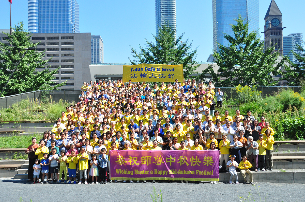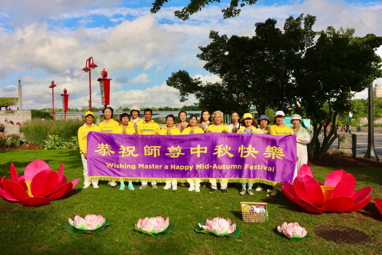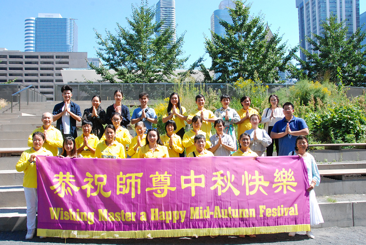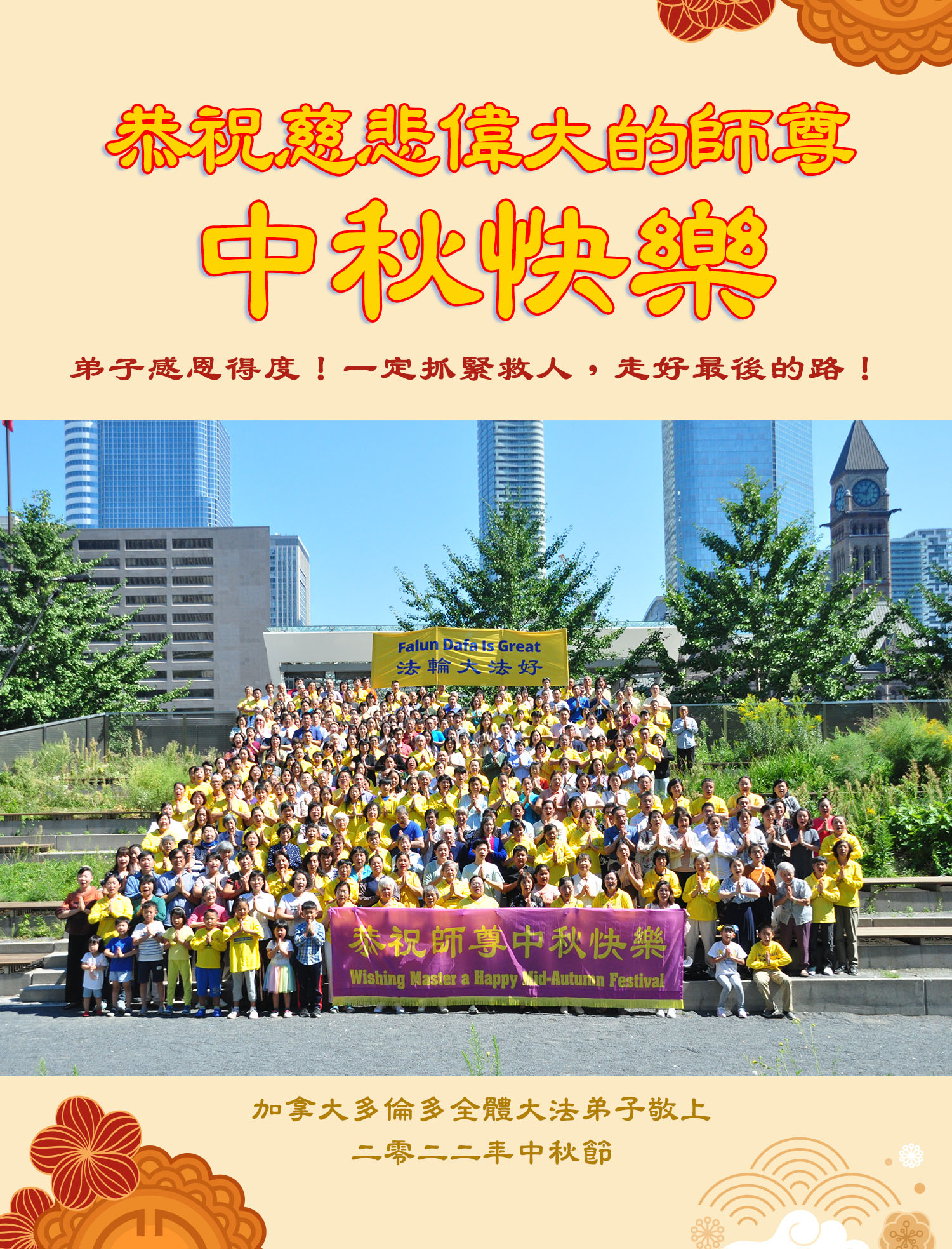 ![]() 图1:二零二二年中秋节来临之际,多伦多法轮功学员九月三日在多伦多市政广场恭祝师尊中秋快乐! |
