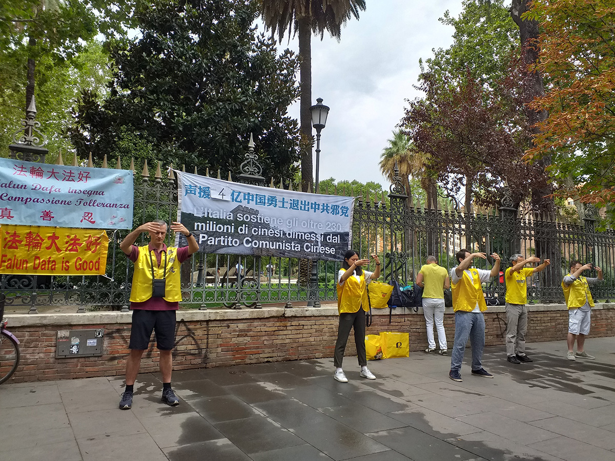 二零二二年九月三日周六,意大利首都罗马在绵绵细雨中度过了周末,罗马及那波里部份法轮功学员举办了声援四亿中国人三:退.及讲清真相活动。