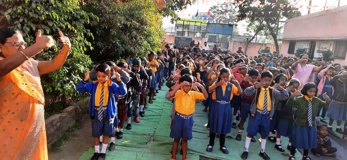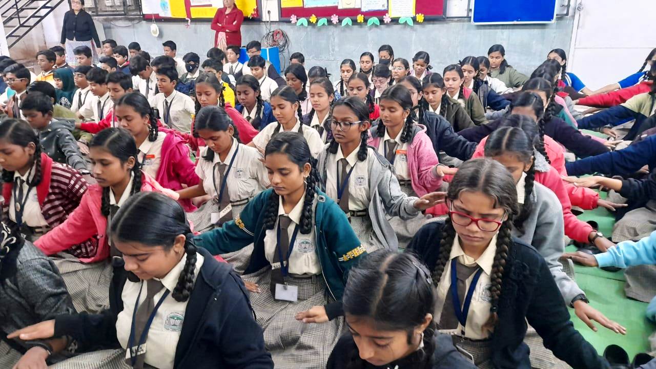 二零二二年十二月二十日,五位学员还到了位于Rani Durgawati Nagar的P.M.S学校和Savitri学校,并向二百名学生和十六名工作人员教授法轮大法五套功法。