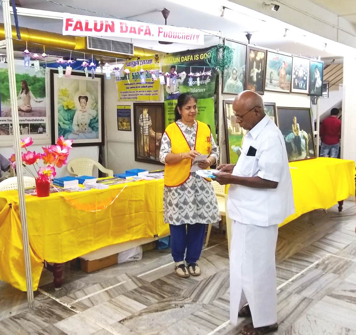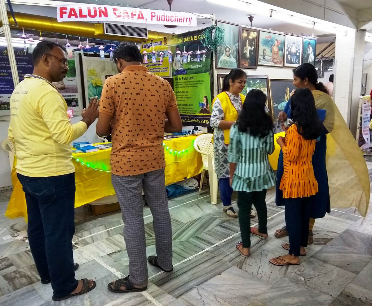 二零二二年十二月十六日至二十五日,部分印度南部的法轮功学员在旅游风景城市本地冶里(Puducherry)国家书展上,向成千上万的参观者介绍了法轮大法,使民众了解了中共迫害的残酷,和法轮功于人身心有益的事实。