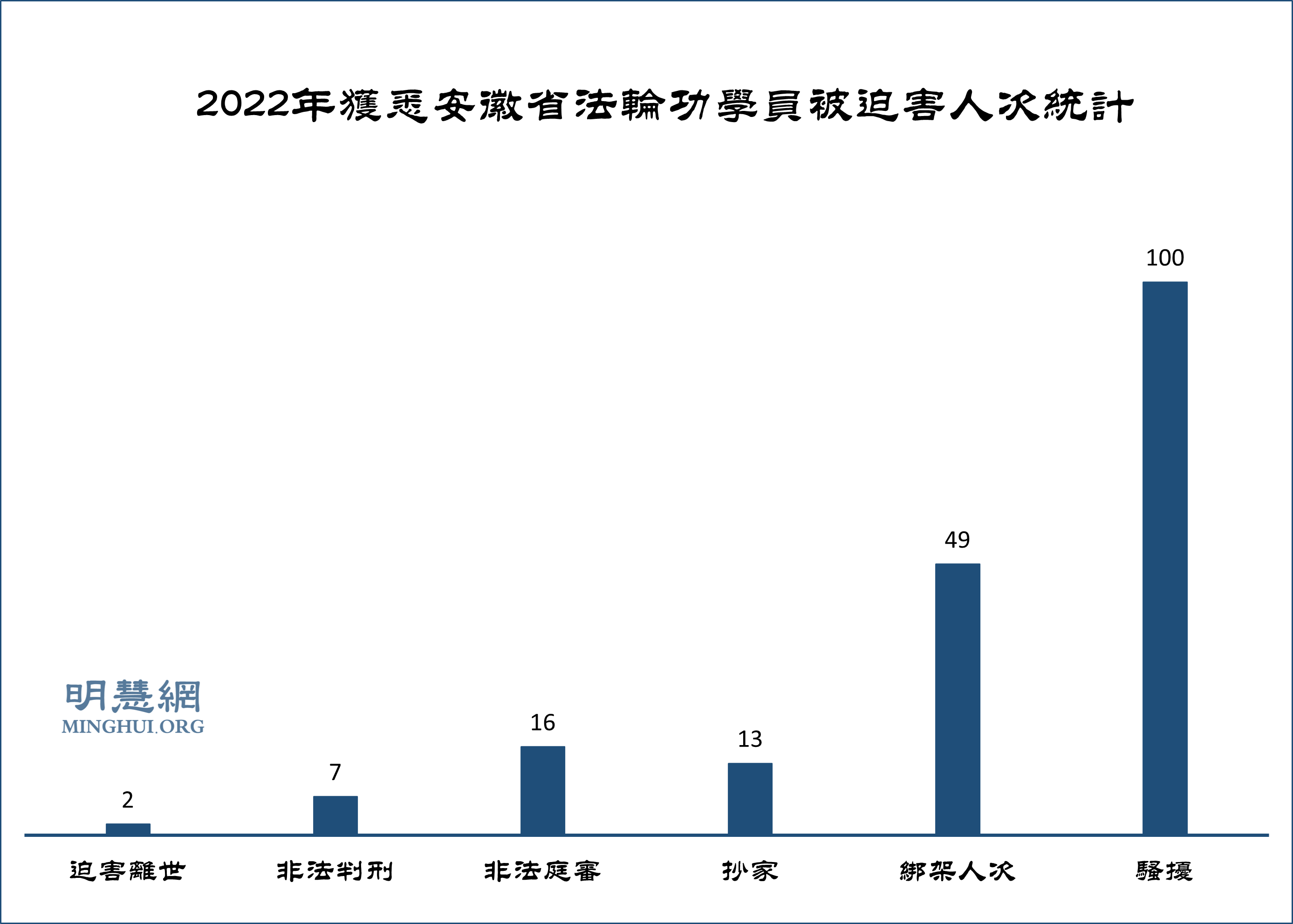 ![]() 图:2022年获悉安徽省法轮功学员被迫害人次统计 |