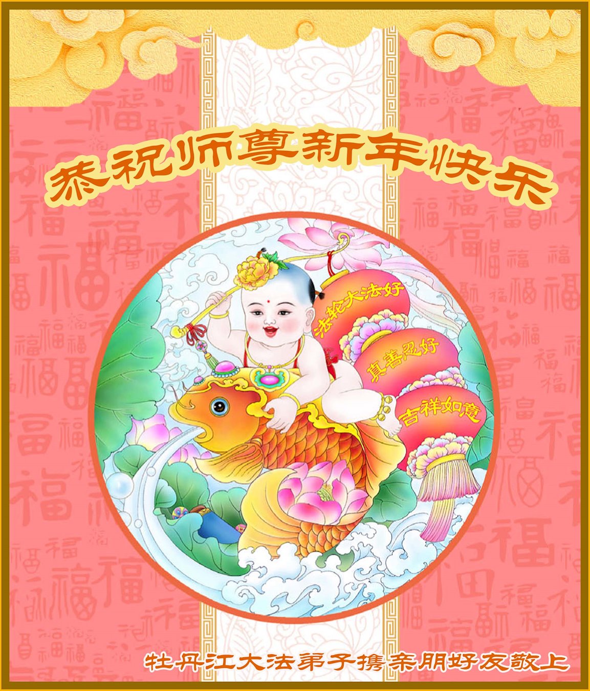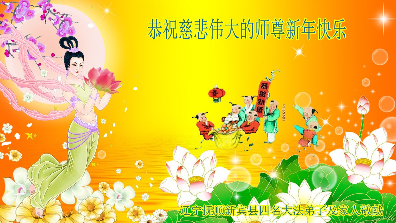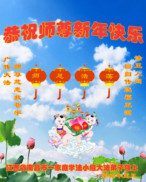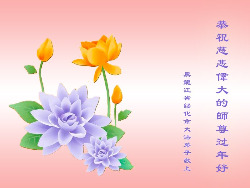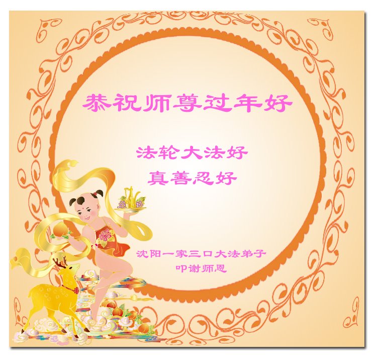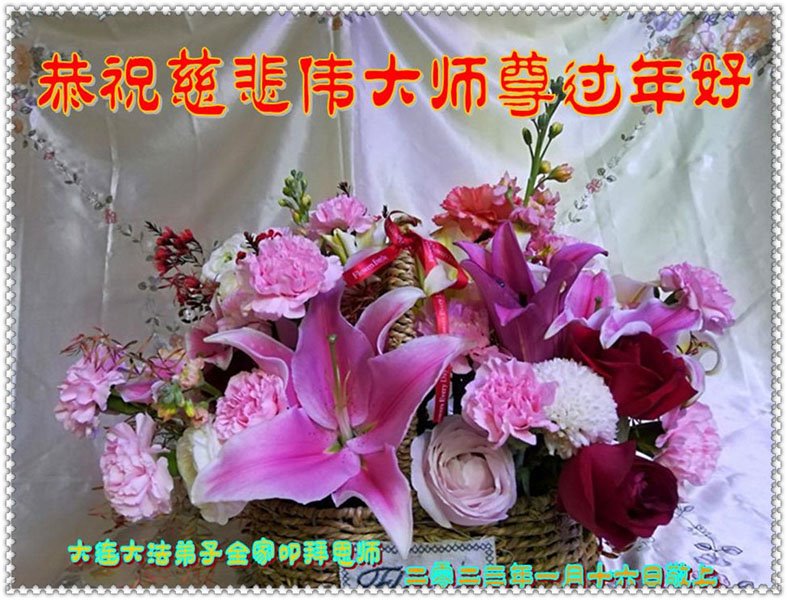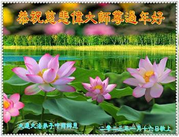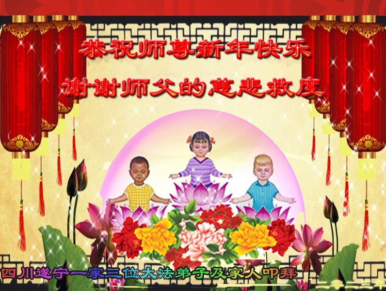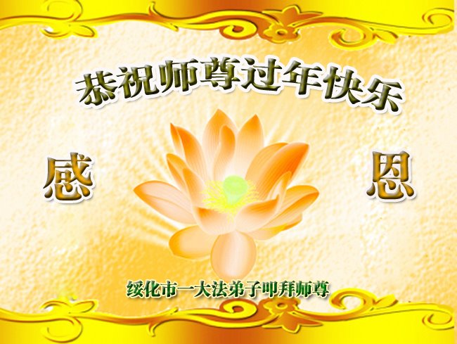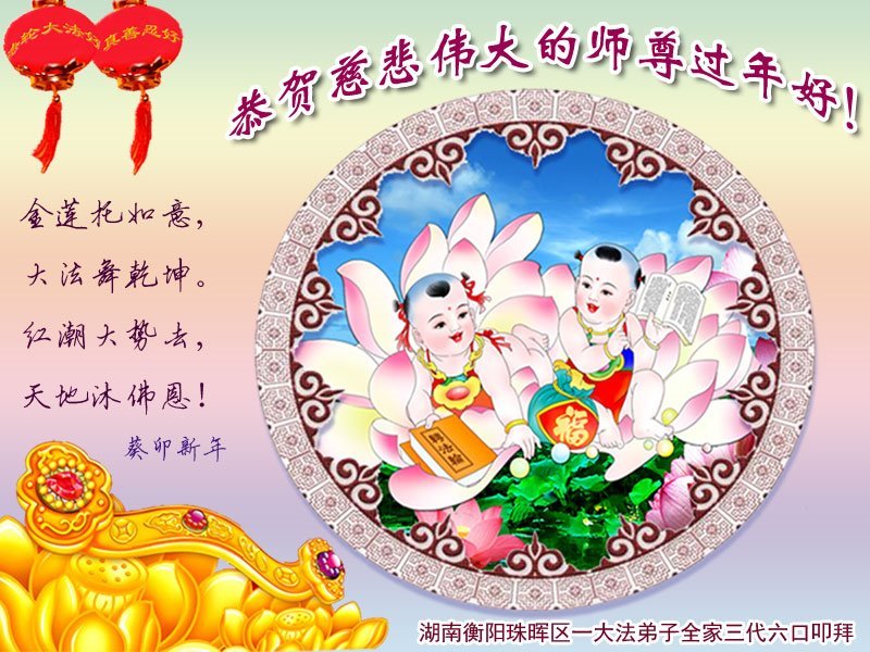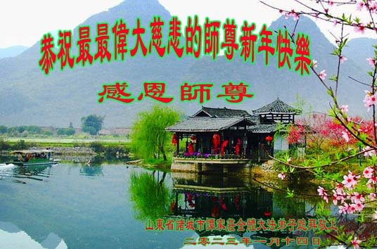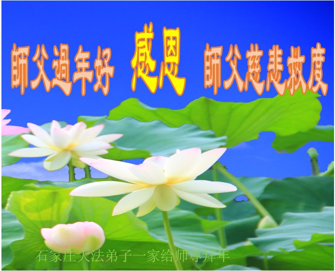 在中国传统大年来临之际,我代表全家人,向慈悲伟大的李大师拜年!献上最诚挚的感恩和祝福:感谢大师佛恩浩荡,慈悲救度!使我们全家身心受益,和睦幸福!万事如意!恭祝大师新年快乐!