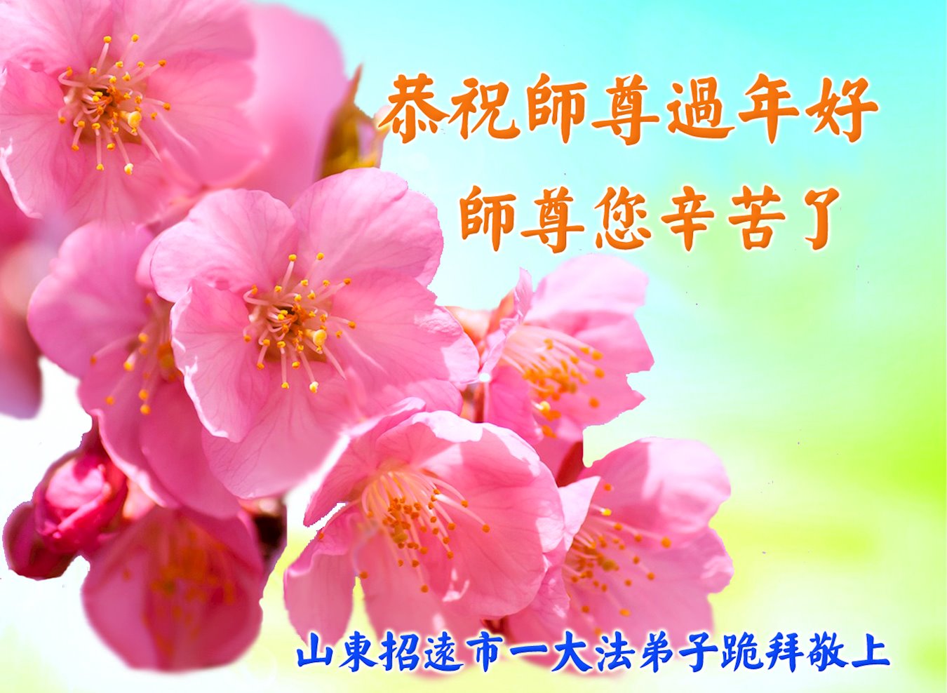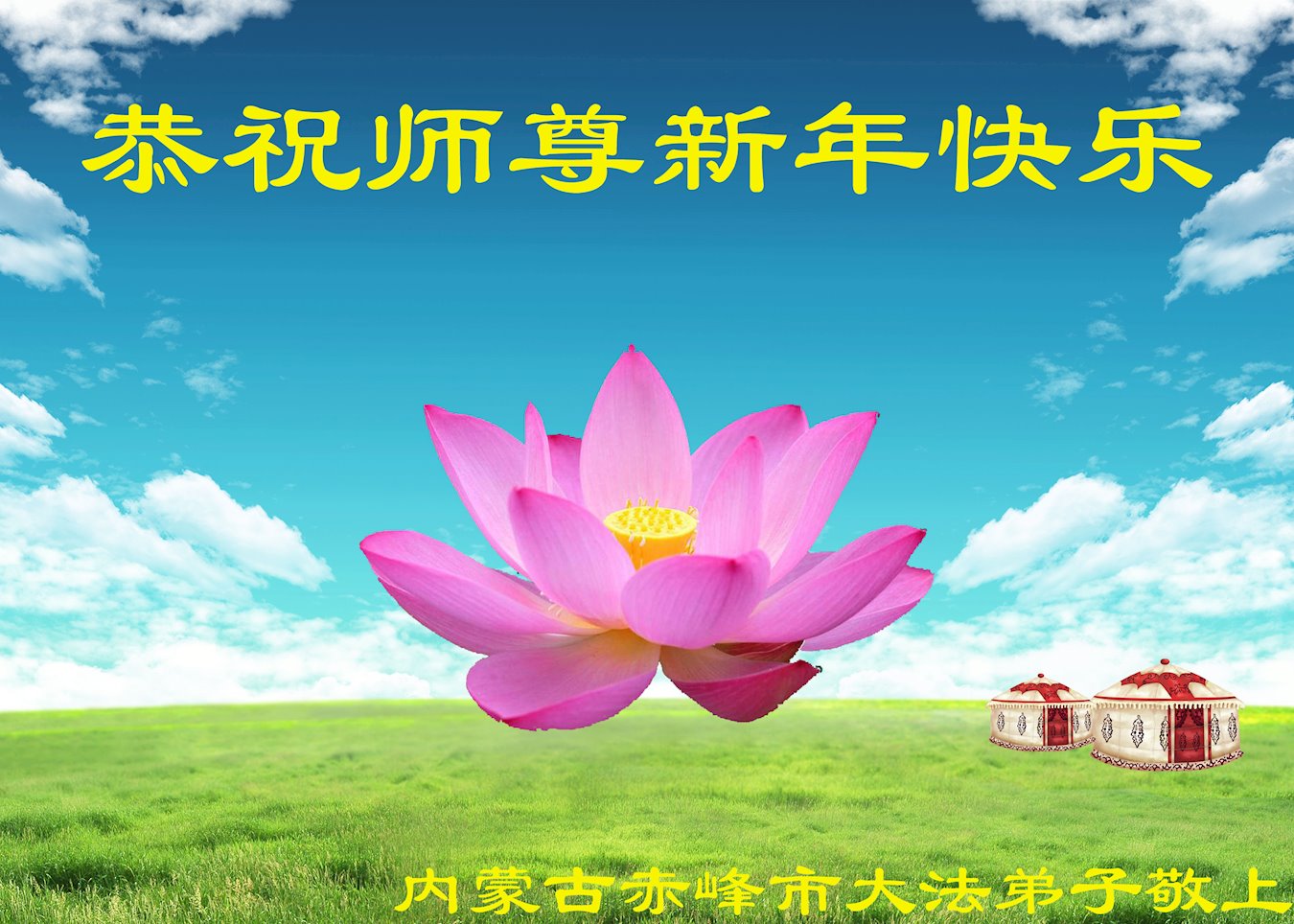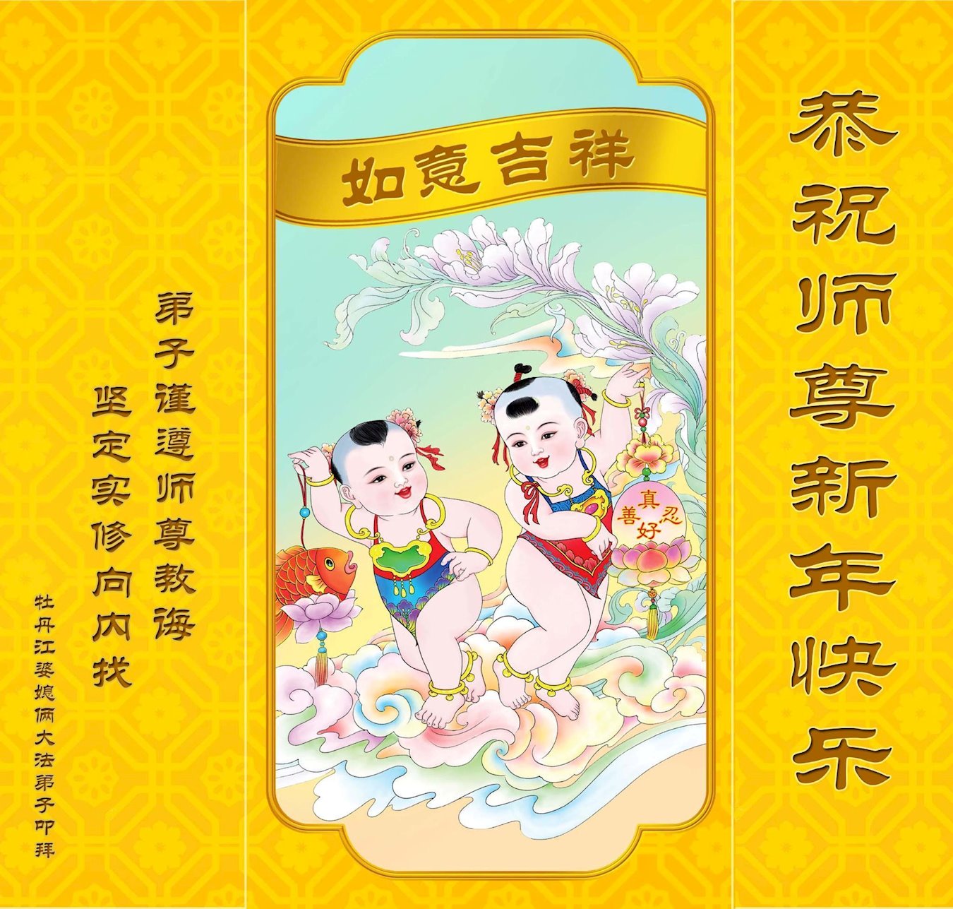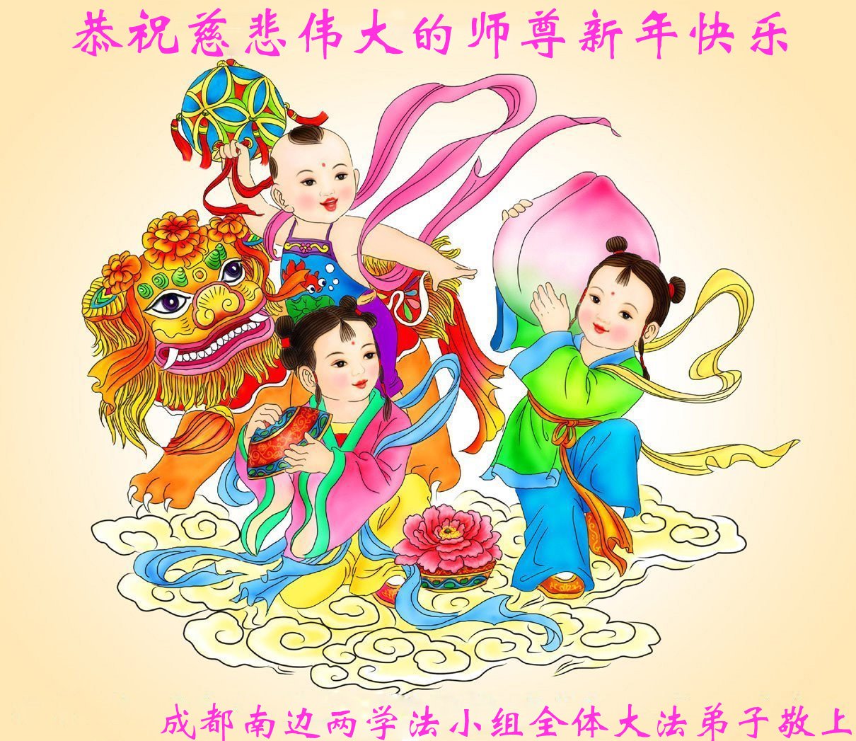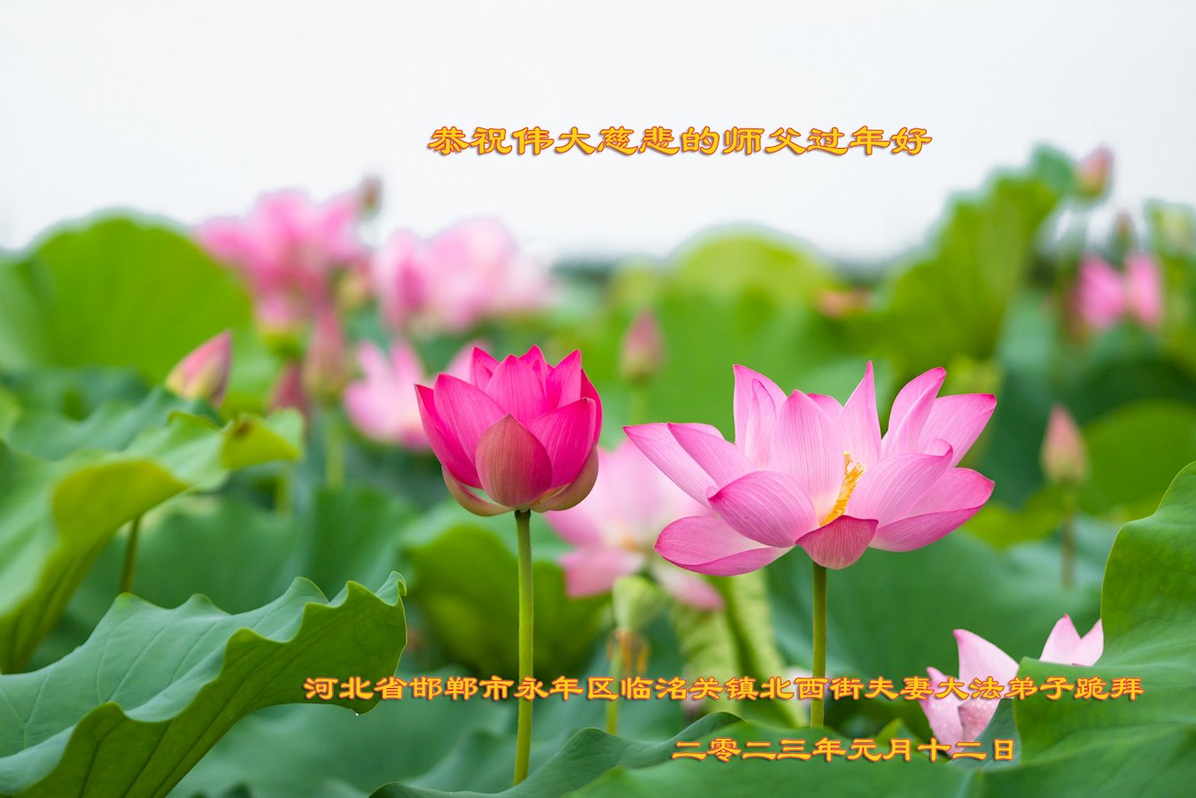 在中国传统大年来临之际,我代表全家人,向慈悲伟大的李大师拜年!献上最诚挚的感恩和祝福:感谢大师佛恩浩荡,慈悲救度!使我们全家身心受益,和睦幸福!万事如意!恭祝大师新年快乐!