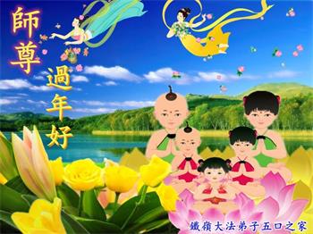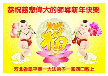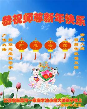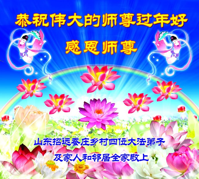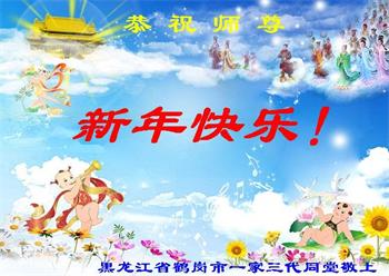 新年到来之际,蒙阴县一家四口大法弟子及家人恭祝师尊新年快乐!