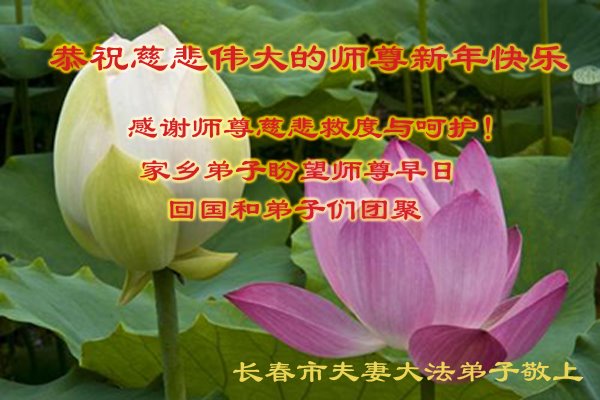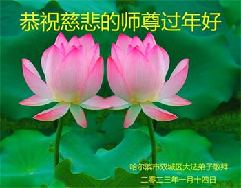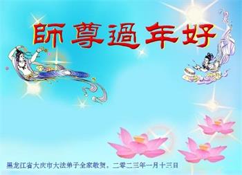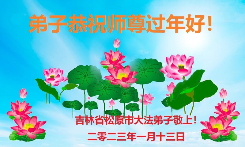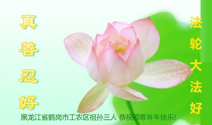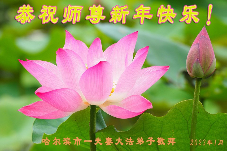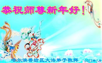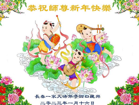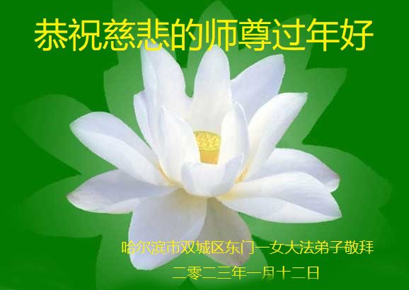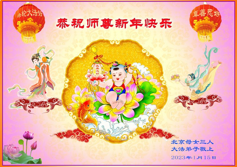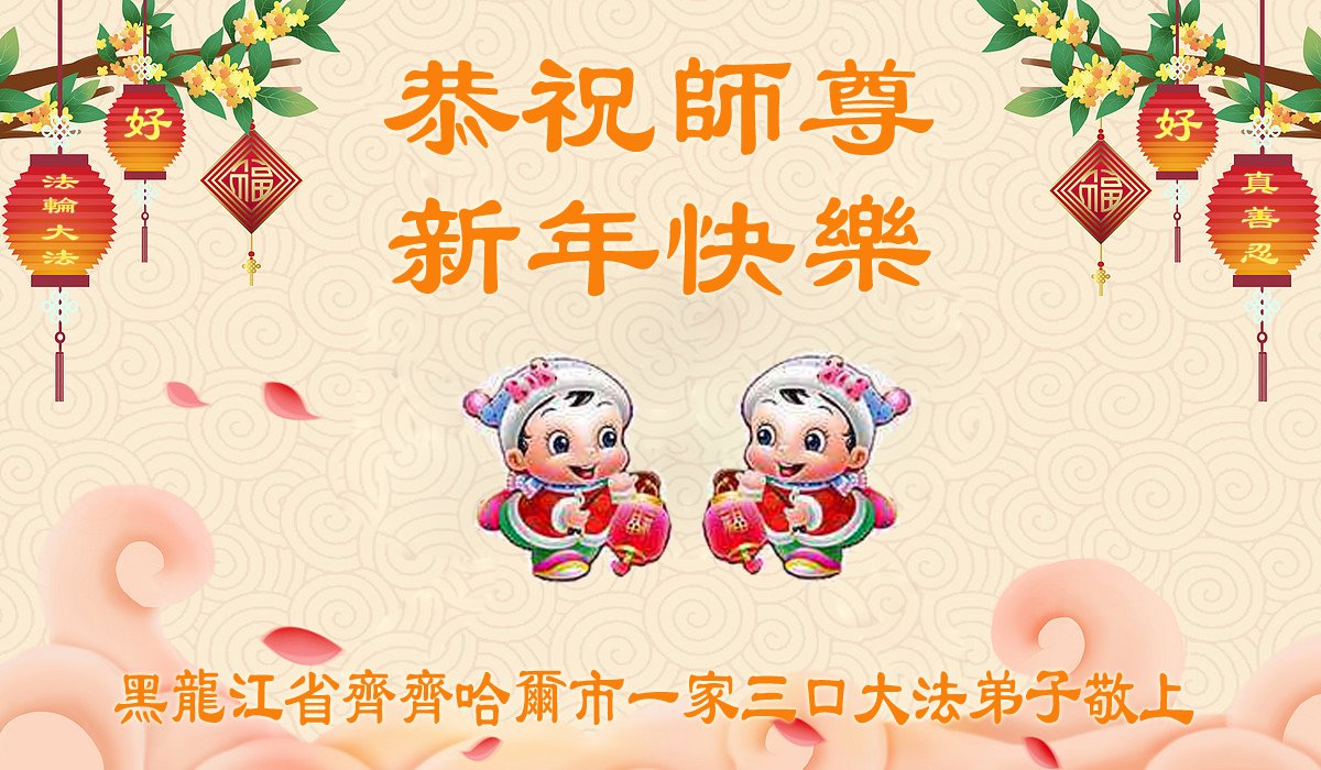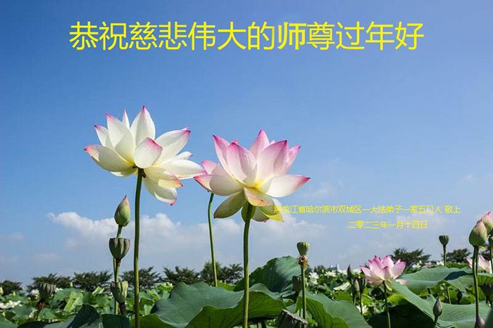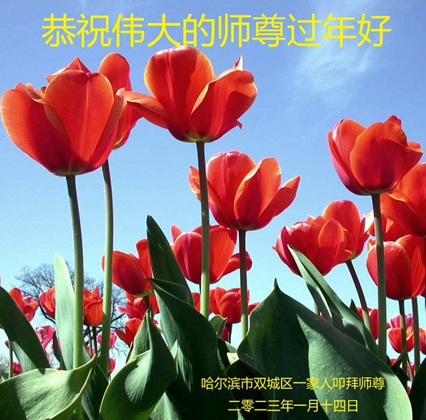 黑龙江哈尔滨市市民代表全家人,向慈悲伟大的李大师拜年!信中说:我市区几乎百分之九十的人染疫,疫情中人们普遍感到无助、压力和恐慌。而我们全家也有多人染疫,但症状很轻。因为我们心怀善念和感恩,诚念“法轮大法好,真善忍好”,在您的慈悲保护下,全家人都平安渡过劫难。