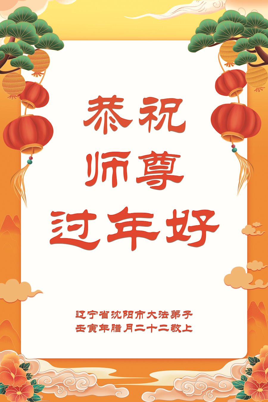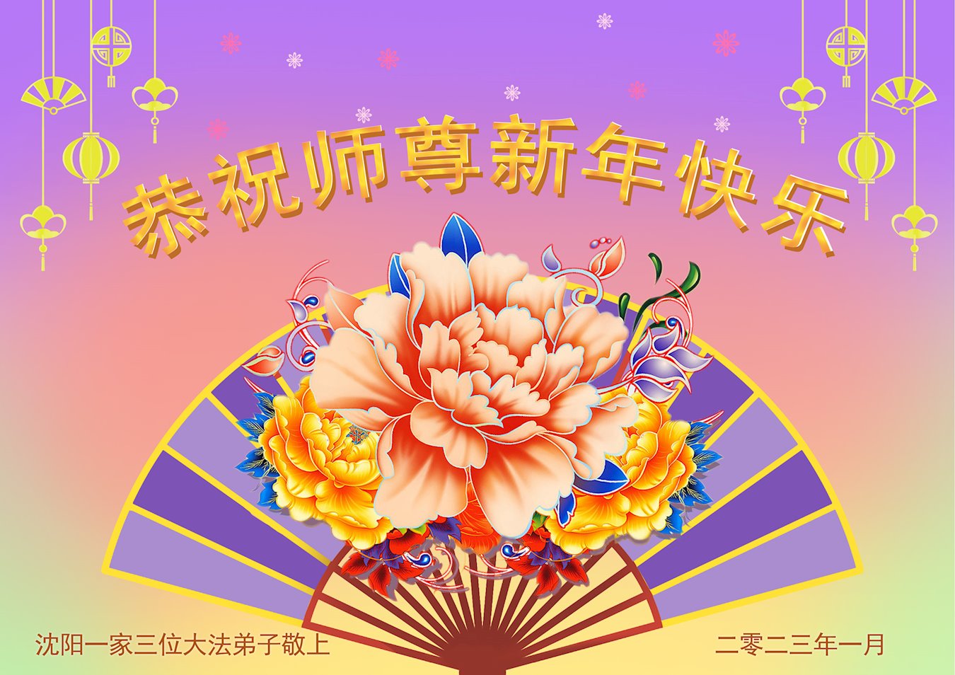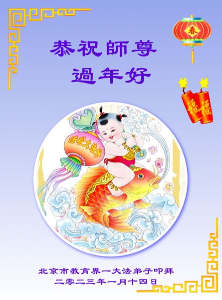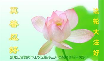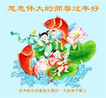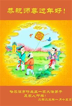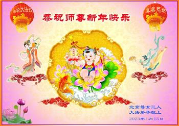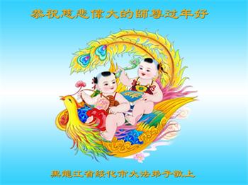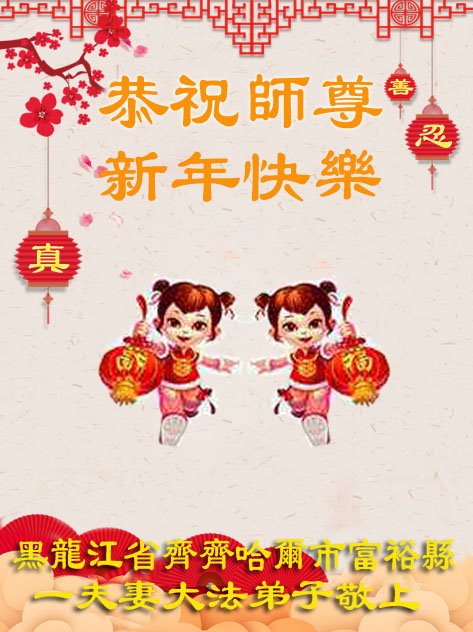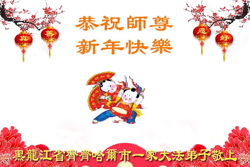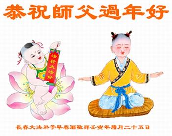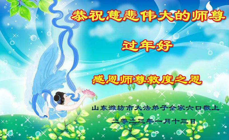 黑龙江哈尔滨市市民代表全家人,向慈悲伟大的李大师拜年!信中说:我市区几乎百分之九十的人染疫,疫情中人们普遍感到无助、压力和恐慌。而我们全家也有多人染疫,但症状很轻。因为我们心怀善念和感恩,诚念“法轮大法好,真善忍好”,在您的慈悲保护下,全家人都平安渡过劫难。