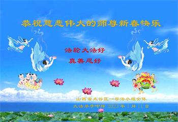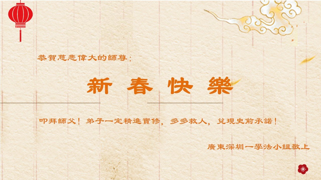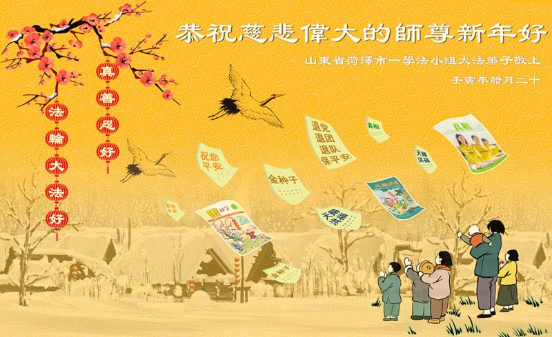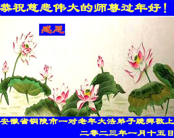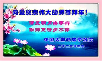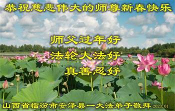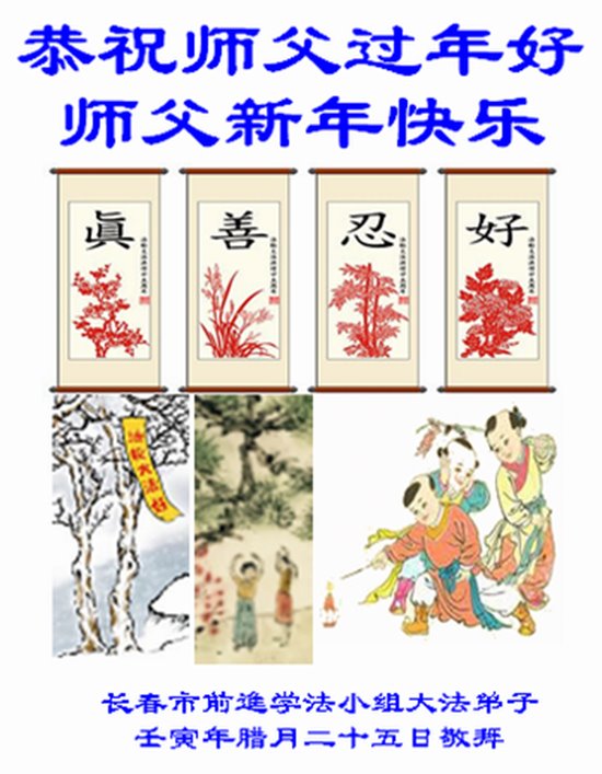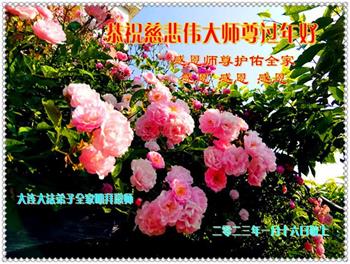 我们是十几年坚持面对面讲真相的学法小组的大法弟子。在新年到来之际,弟子们想念师父!师父辛苦了!千言万语也不能表达对师父的感恩之心!我们一定精進实修,做好三件事,救度更多的众生,用行动来报答师父的慈悲救度!