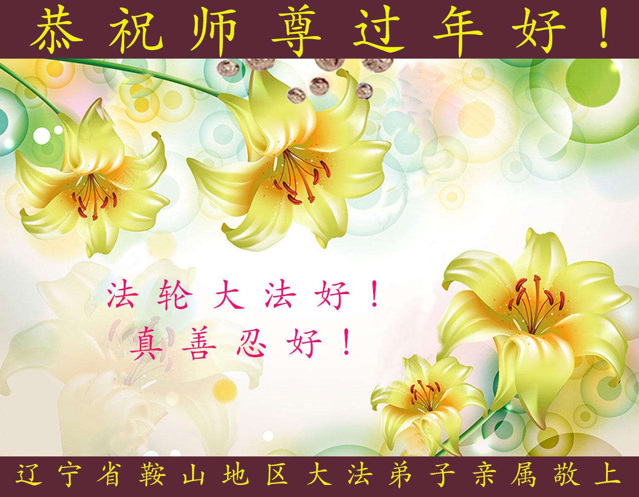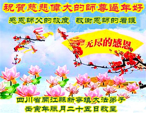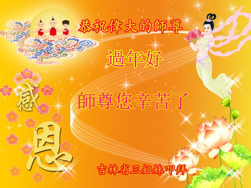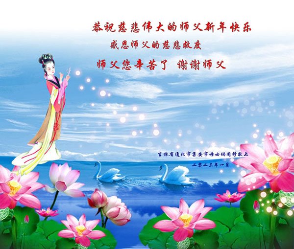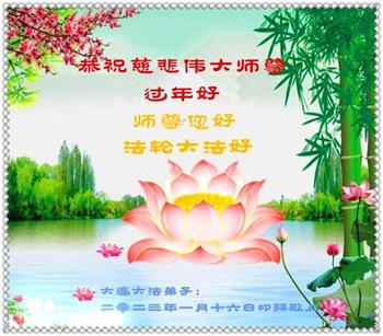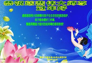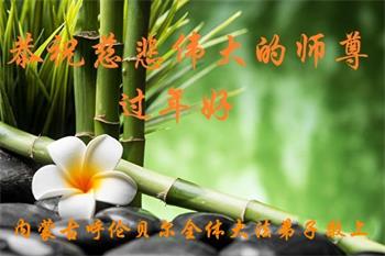 相信大法好而受益的民众向大法师父献上最诚挚的感恩和祝福,感谢大师佛恩浩荡,慈悲救度!恭祝李大师过年好!